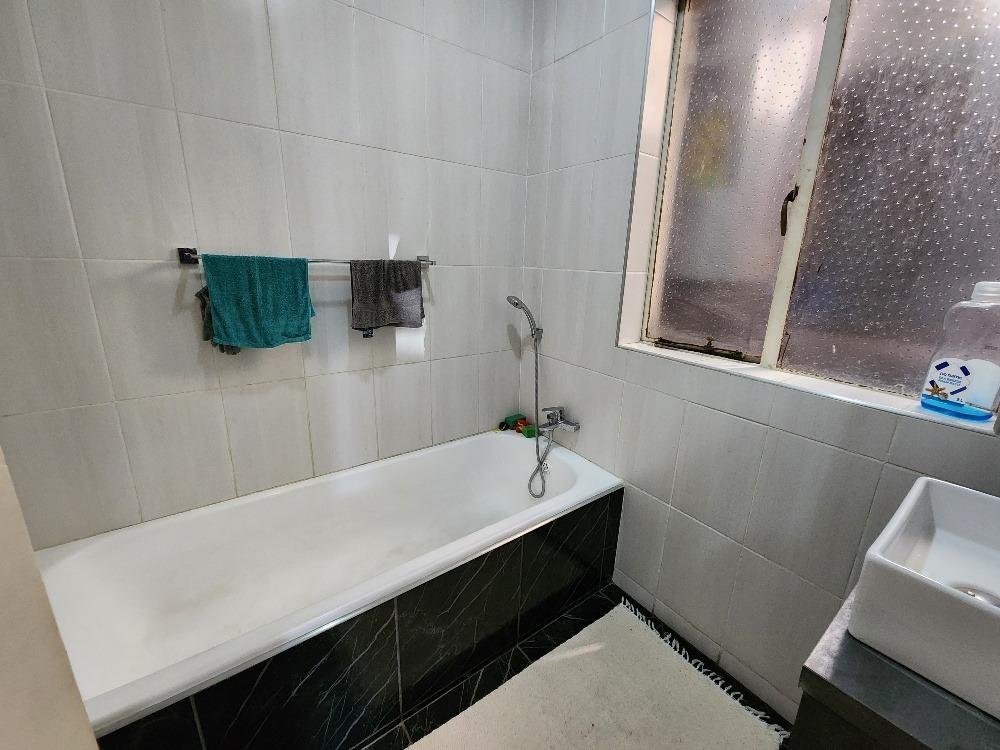 The separate, fully fitted kitchen offers modern built-in cupboards, an under-counter oven, hob, cooker hood, and ample space for your essential appliances. Both bedrooms are generously sized, with the main bedroom larger than average and fitted with built-in cupboards. The entire apartment is fully tiled, ensuring low-maintenance living.