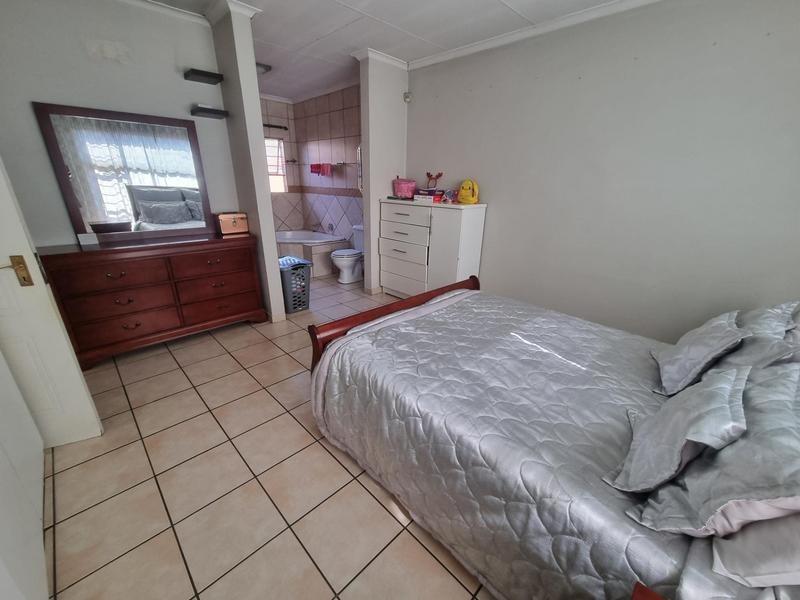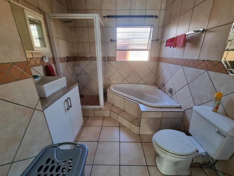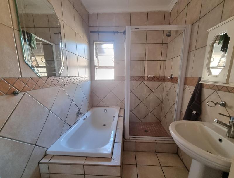 The home offers three well-proportioned bedrooms with built-in cupboards and tiled floors, and two full bathrooms the main en-suite includes a luxurious corner bath and shower.