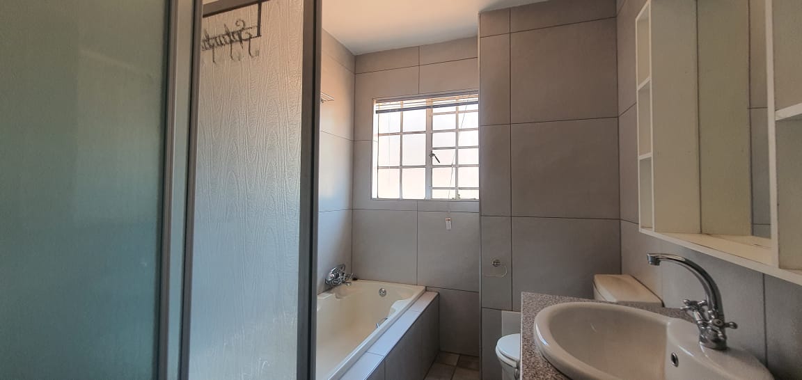 The home offers two comfortable bedrooms with built-in cupboards and a full bathroom with a bath, shower, toilet, and basin.