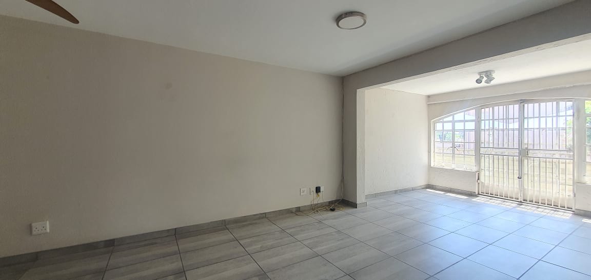 The lounge opens through double doors to a private garden — a perfect space to relax, entertain, or enjoy your morning coffee.