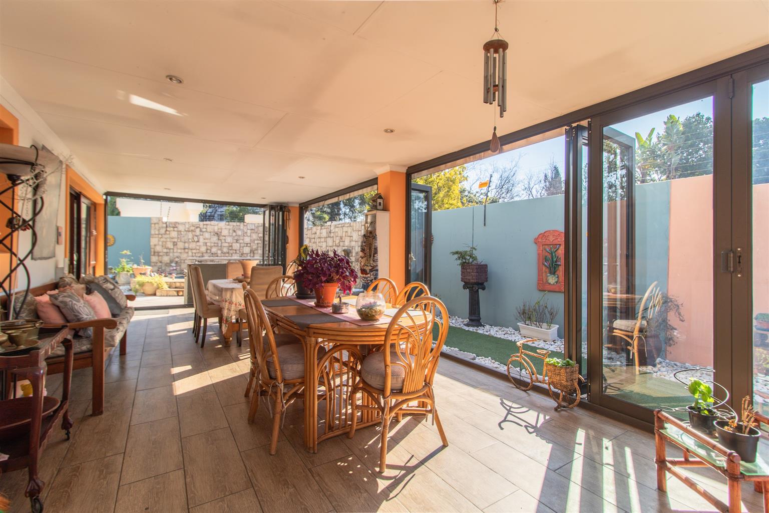 A real feature of this home is the massive, sun-drenched patio with stacking doors and gas braai. This space is large enough for an outdoor lounge and dining suite and boasts views over the low maintenance garden and spa pool. There is a second outdoor braai near the pool - ideal for entertaining.