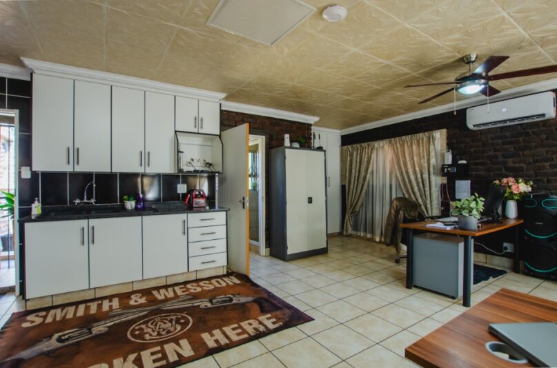 • Lounge: Aircon, ceiling fan, built-in cupboards, large gun safe