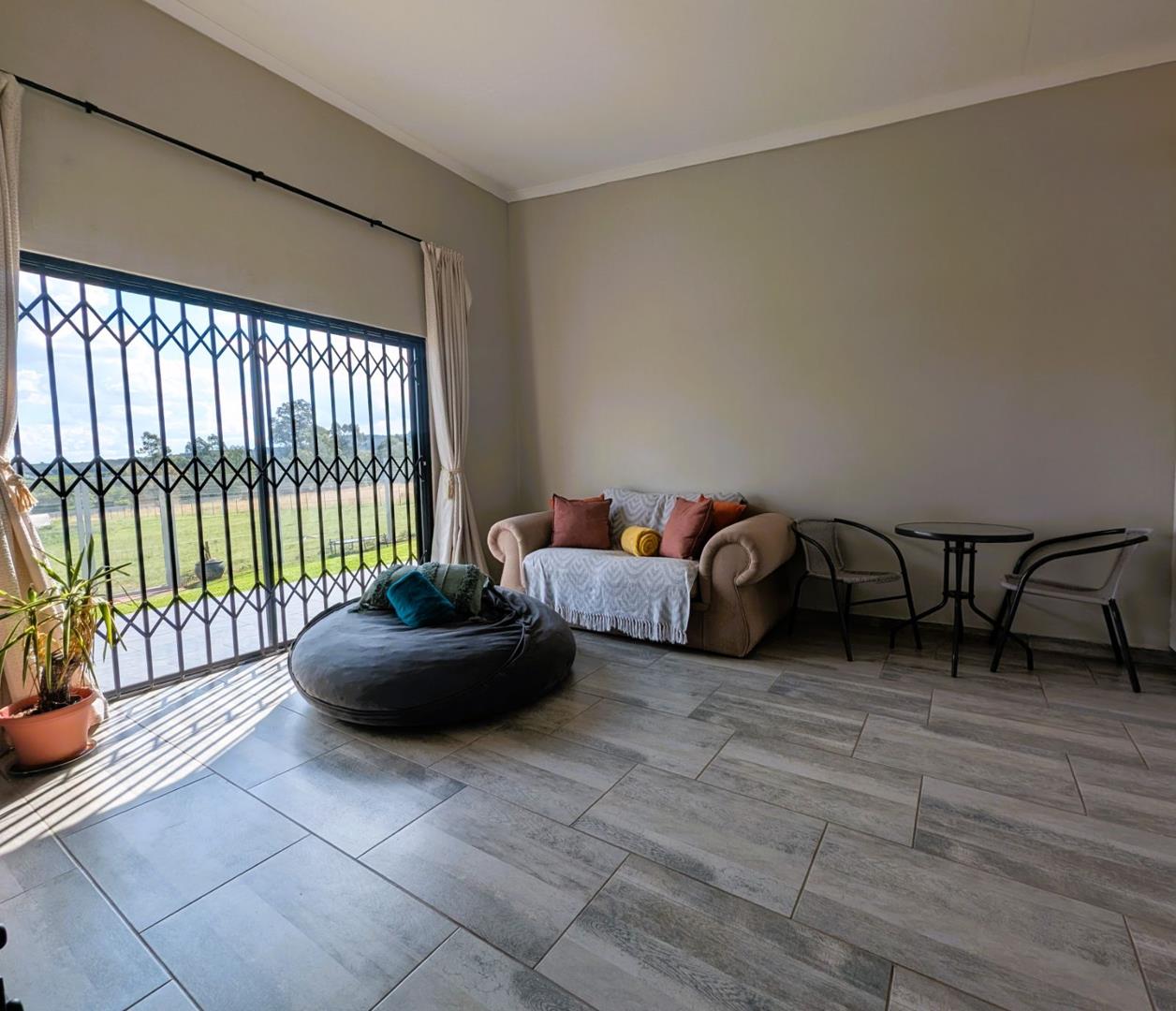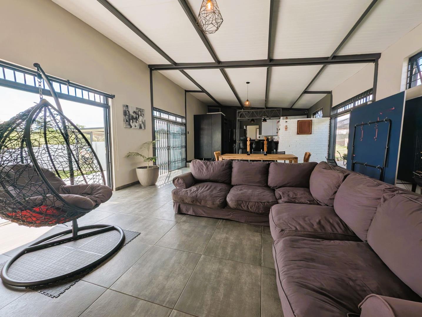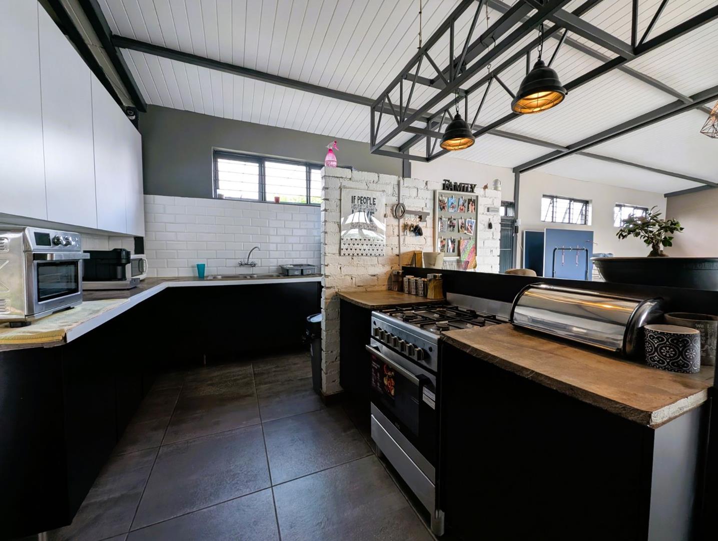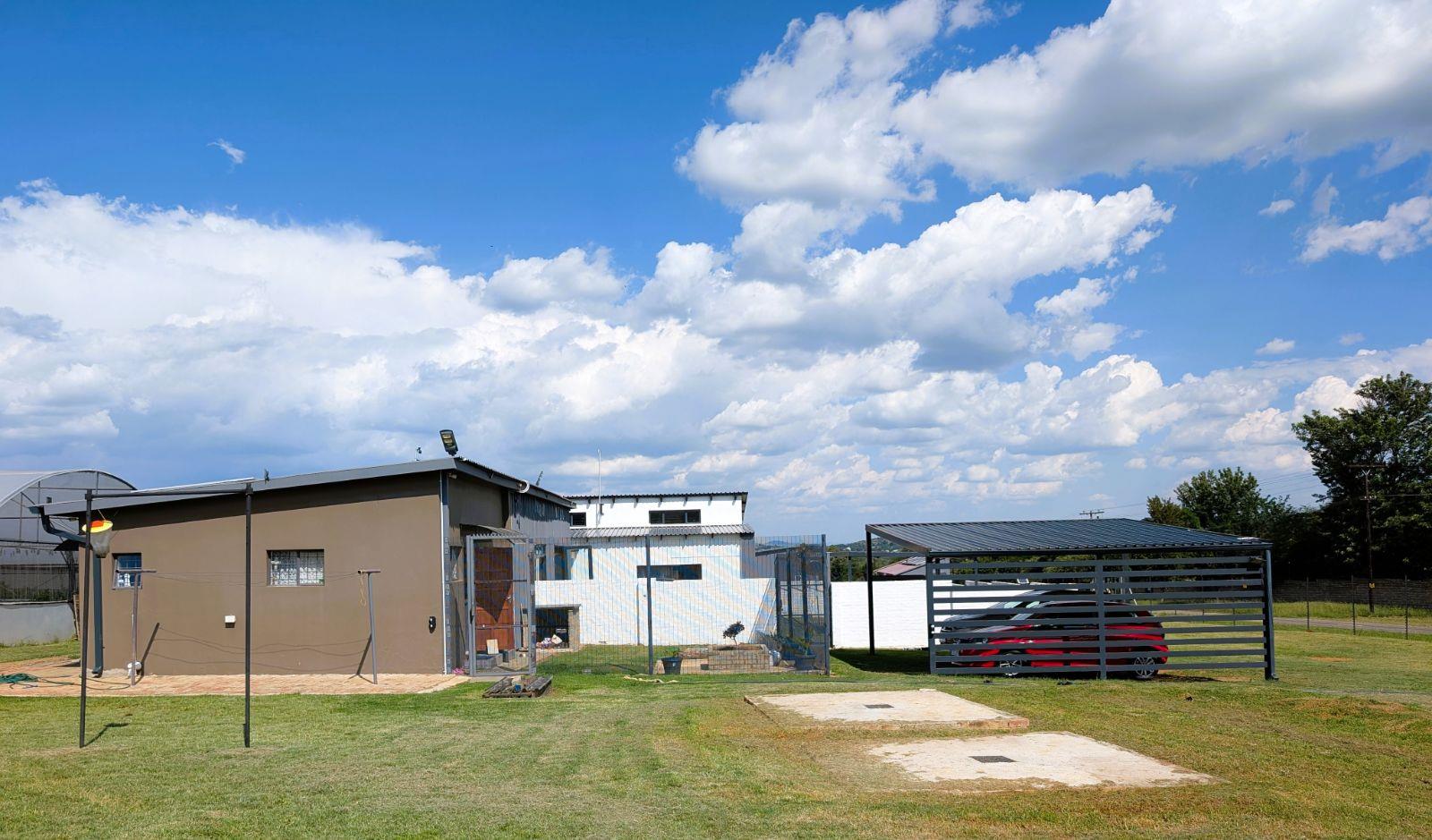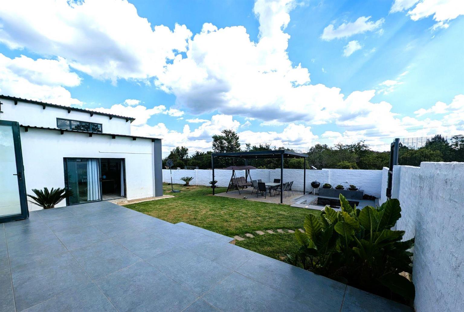 This modern, self-sufficient 4-bedroom, 2-bathroom home is perfect for those with a passion for sustainability. Featuring open-plan living, a study, and sliding doors leading to an entertainment courtyard with a firepit, it's designed for comfort. Security is top-notch with electric fencing and Clearview. Two stylish 2-bedroom cottages generate R15,000 pm, while veggie tunnels with drip irrigation bring in on average R32,000 pm. Wifi tower on property, resulting in free wifi. A solar system and borehole with water tanks provide complete off-grid living. Three garages, storeroom and a work area add to the appeal. Ideal for green-fingered buyers seeking security, sustainability, and income. Call now to view this unique opportunity!
