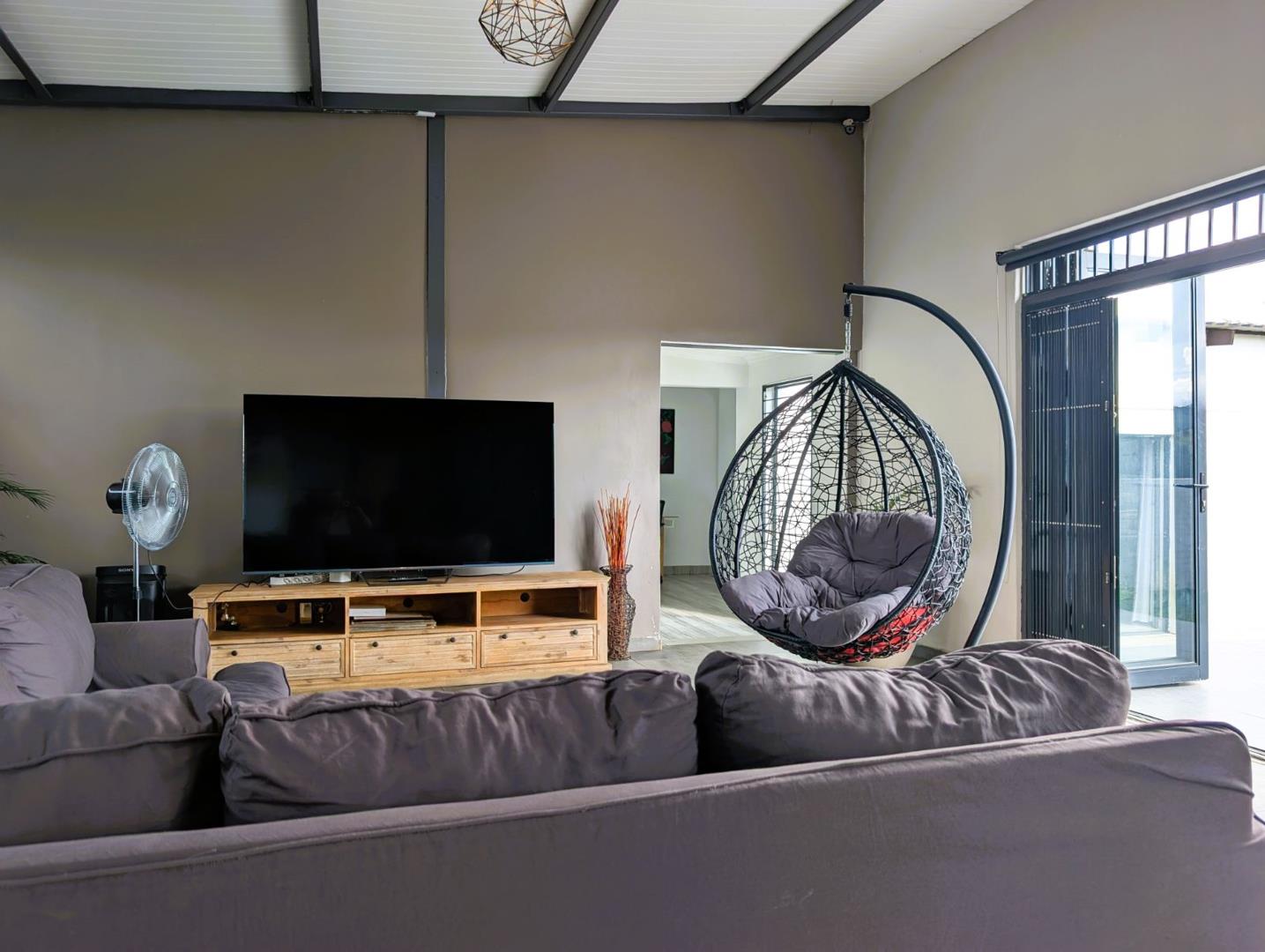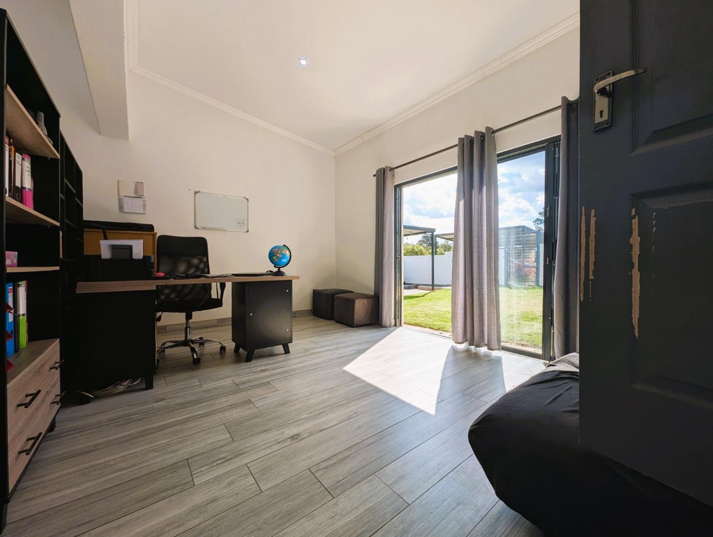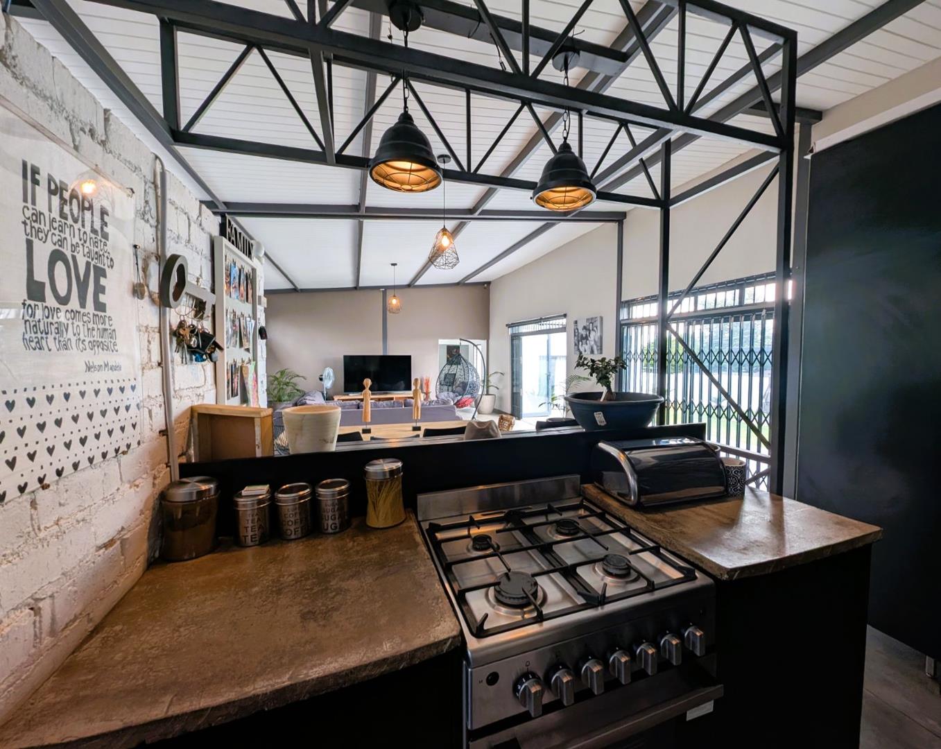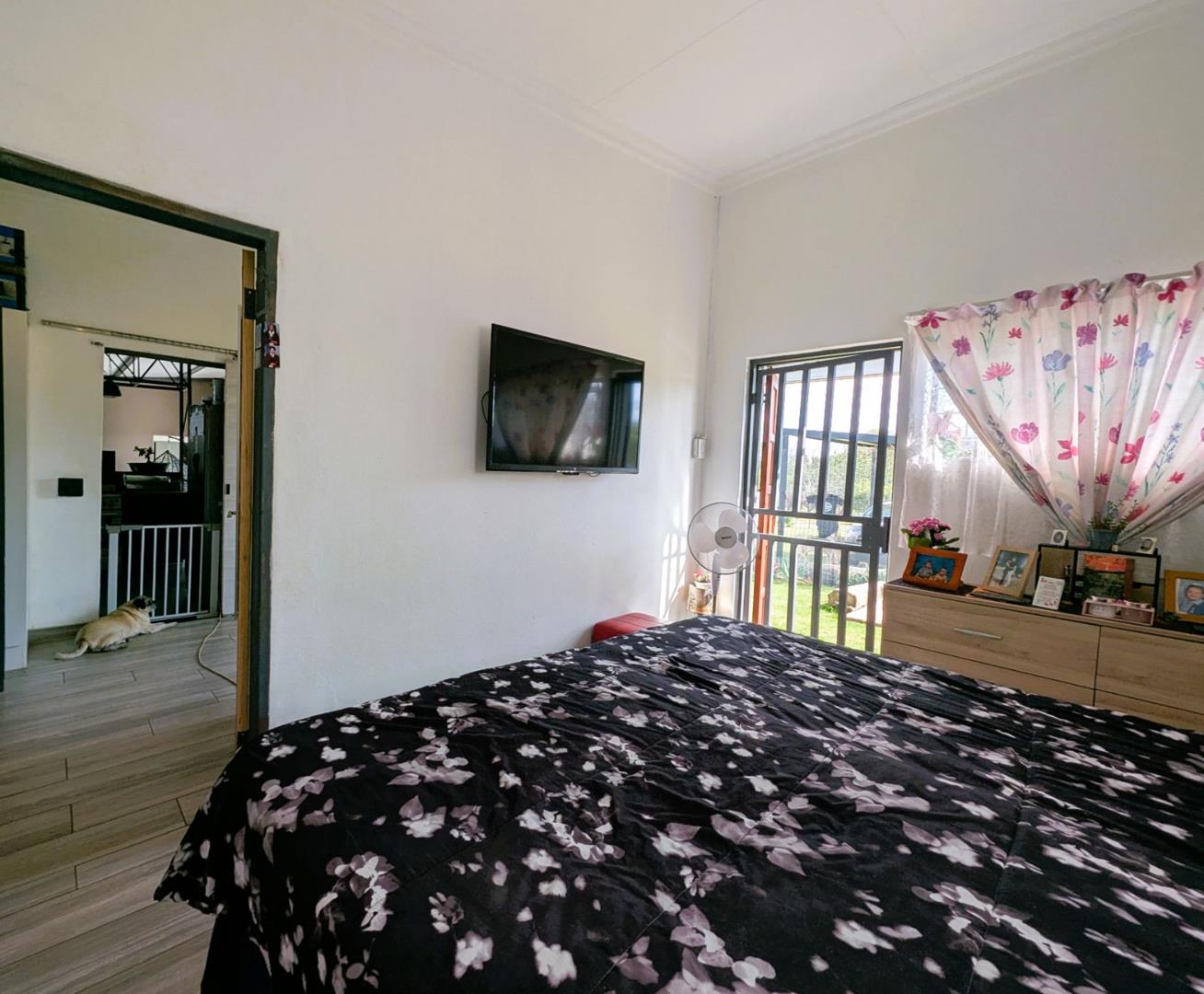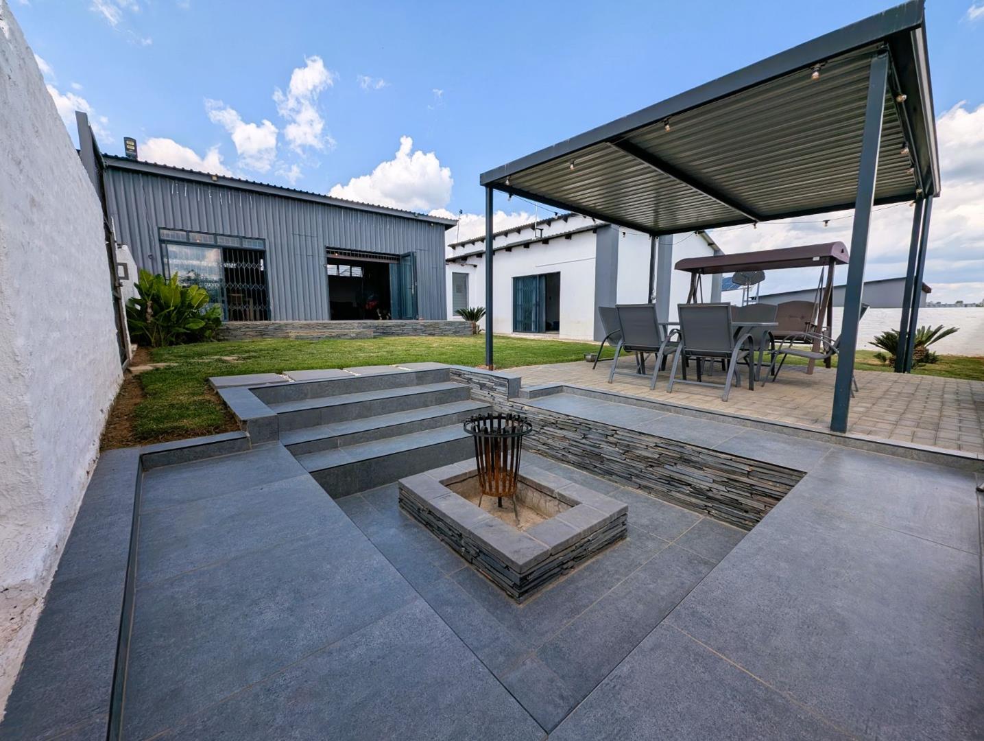 This modern, self-sufficient 4-bedroom, 2-bathroom home is perfect for those with a passion for sustainability. Featuring open-plan living, a study, and sliding doors leading to an entertainment courtyard with a firepit, it's designed for comfort. Security is top-notch with electric fencing and Clearview. Two stylish 2-bedroom cottages generate R15,000 pm, while veggie tunnels with drip irrigation bring in on average R32,000 pm. Wifi tower on property, resulting in free wifi. A solar system and borehole with water tanks provide complete off-grid living. Three garages, storeroom and a work area add to the appeal. Ideal for green-fingered buyers seeking security, sustainability, and income. Call now to view this unique opportunity!