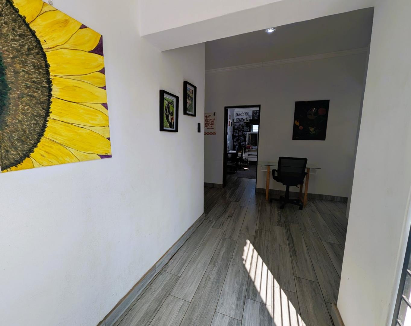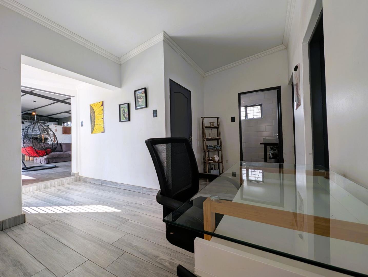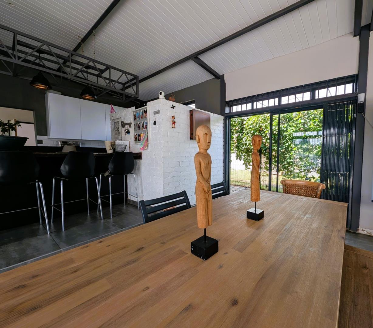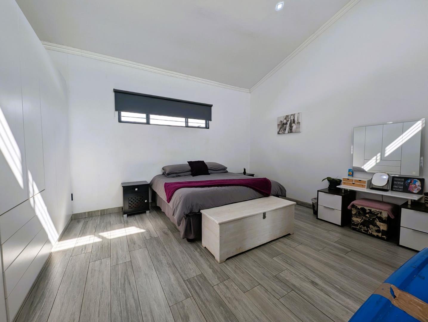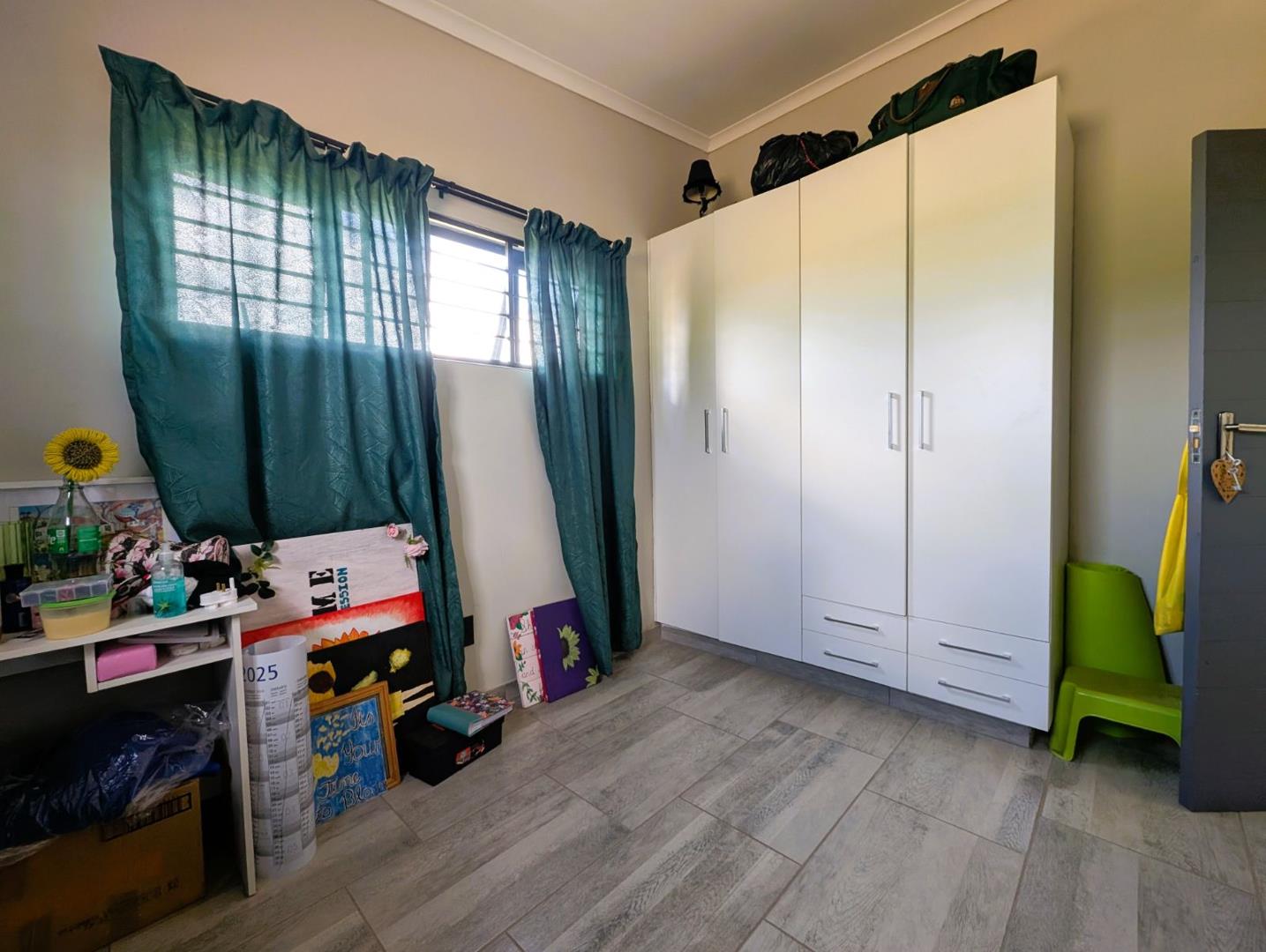 This modern, self-sufficient 4-bedroom, 2-bathroom home is perfect for those with a passion for sustainability. Featuring open-plan living, a study, and sliding doors leading to an entertainment courtyard with a firepit, it's designed for comfort. Security is top-notch with electric fencing and Clearview. Two stylish 2-bedroom cottages generate R15,000 pm, while veggie tunnels with drip irrigation bring in on average R32,000 pm. Wifi tower on property, resulting in free wifi. A solar system and borehole with water tanks provide complete off-grid living. Three garages, storeroom and a work area add to the appeal. Ideal for green-fingered buyers seeking security, sustainability, and income. Call now to view this unique opportunity!
