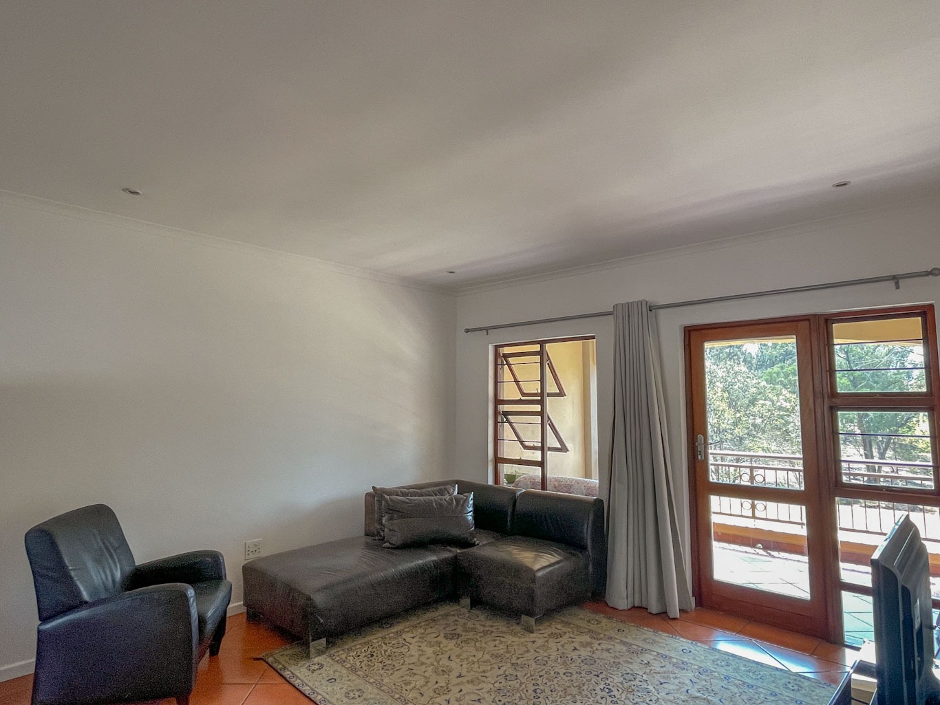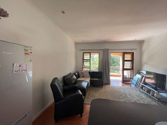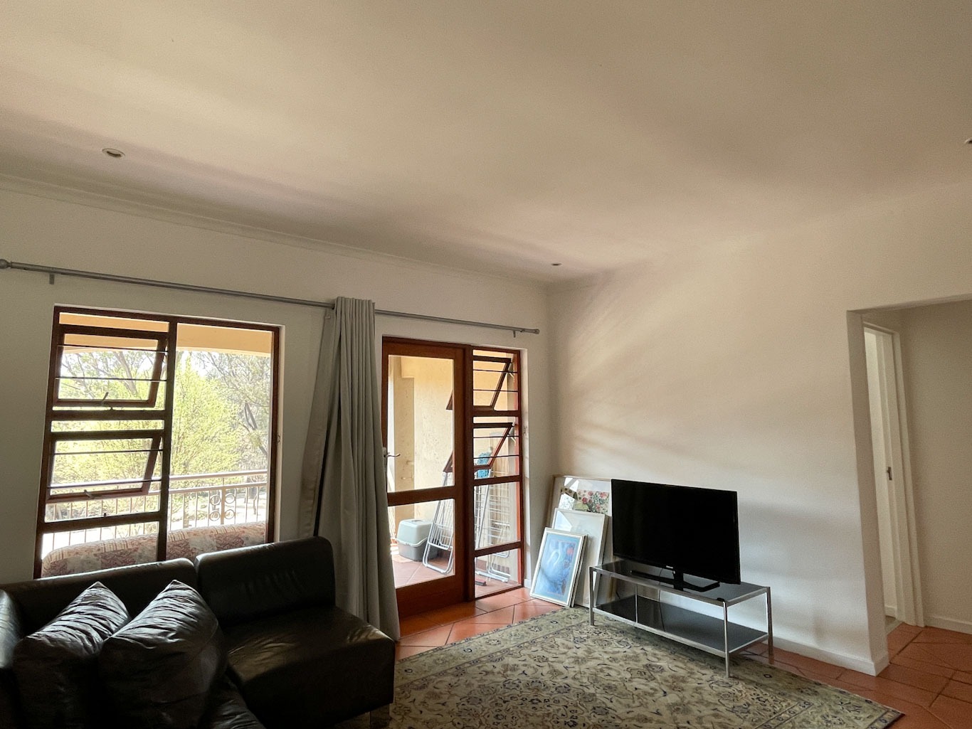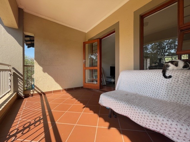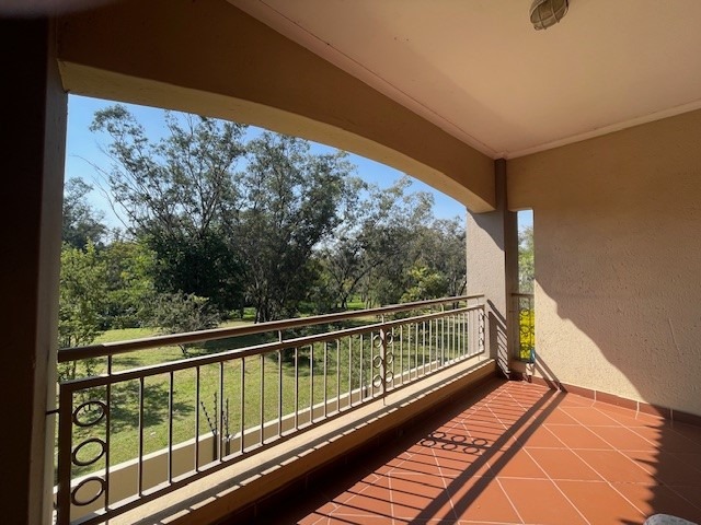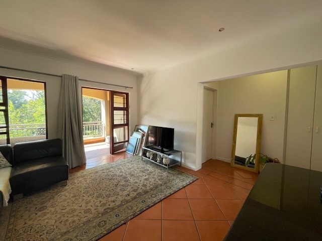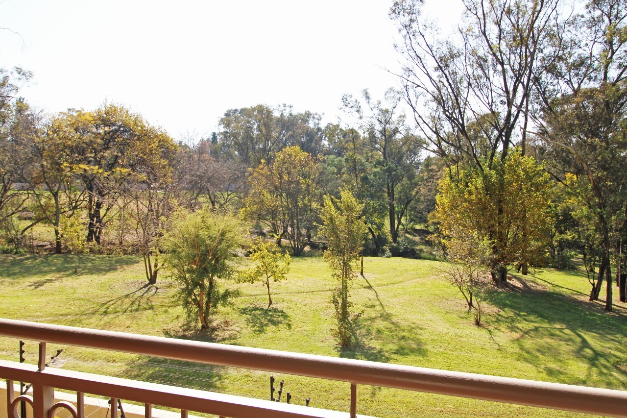 Bright and airy living area leading to a private balcony with serene views of the Braamfontein Spruit