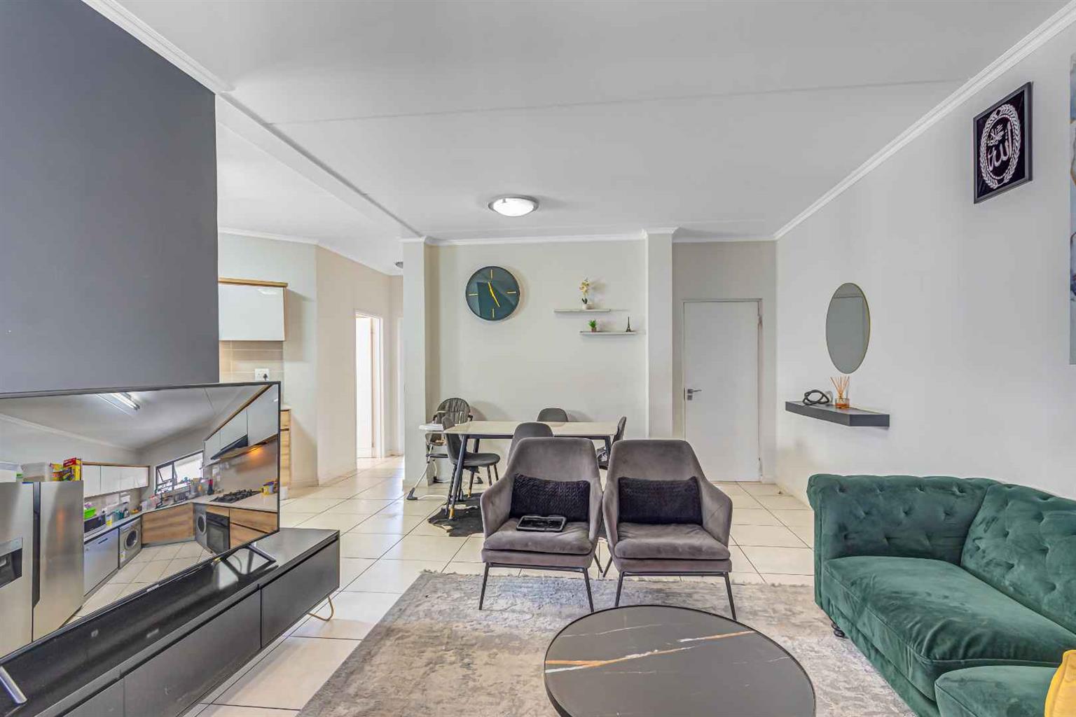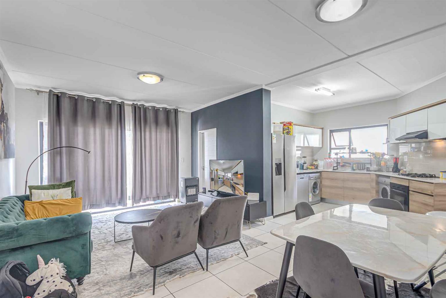 This spacious home features 3 bedrooms, 2 bathrooms, and a sleek open-plan kitchen fitted with top-quality appliances including a washer, tumble dryer, dishwasher, fridge, gas hob, and electric oven designed for easy and comfortable living.