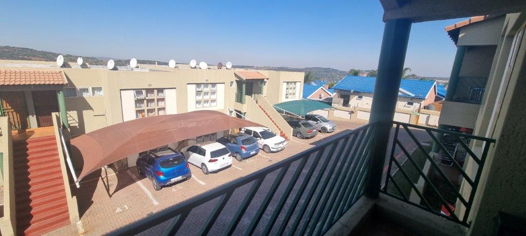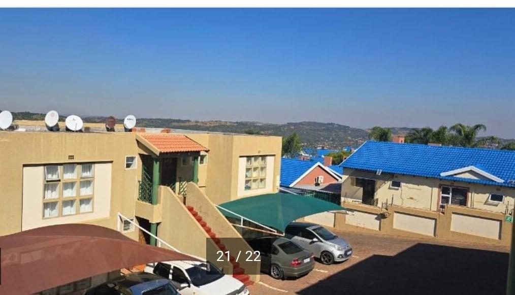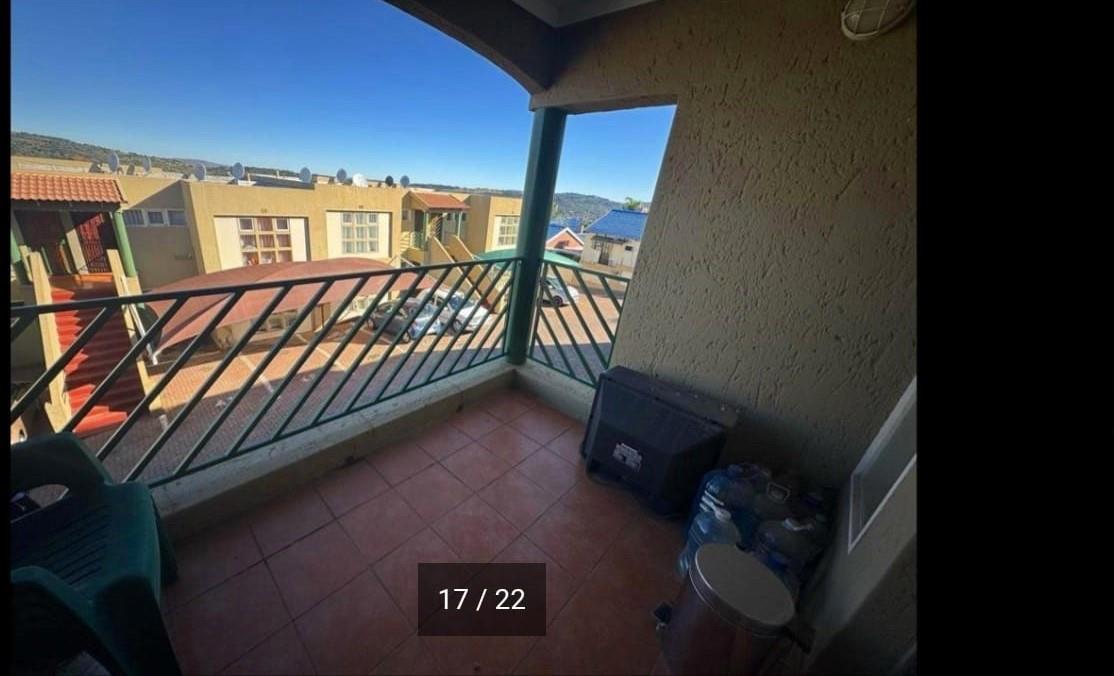 This lock-up and go upstairs unit has a view down the mountain over the valley. Offers you a kitchen with ample cupboards and space for your washing machine and fridge. Lovely lounge with a balcony. Full bathroom and 2 well-sized bedrooms. 1 covered parking per unit . With ample visitor parking as well. All in a 24-hour security complex.