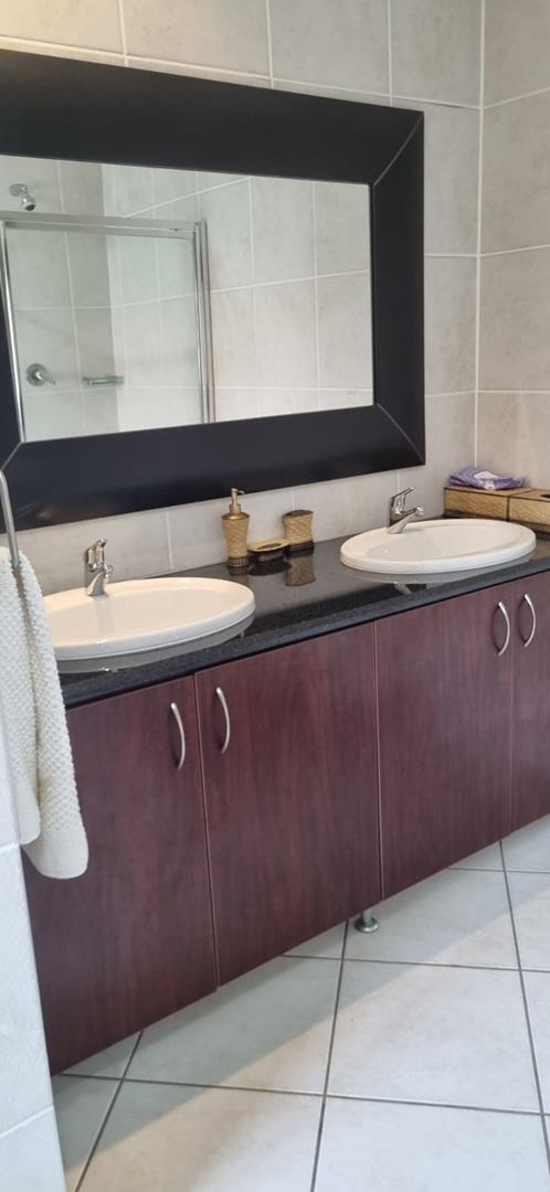 All three bedrooms are bright and airy with built-in cupboards, and each has an ensuite bathroom. Two of the bathrooms feature a shower, basin, and toilet. The main bedroom offers a toilet, bath, shower, and double basins with a walk through closet area.