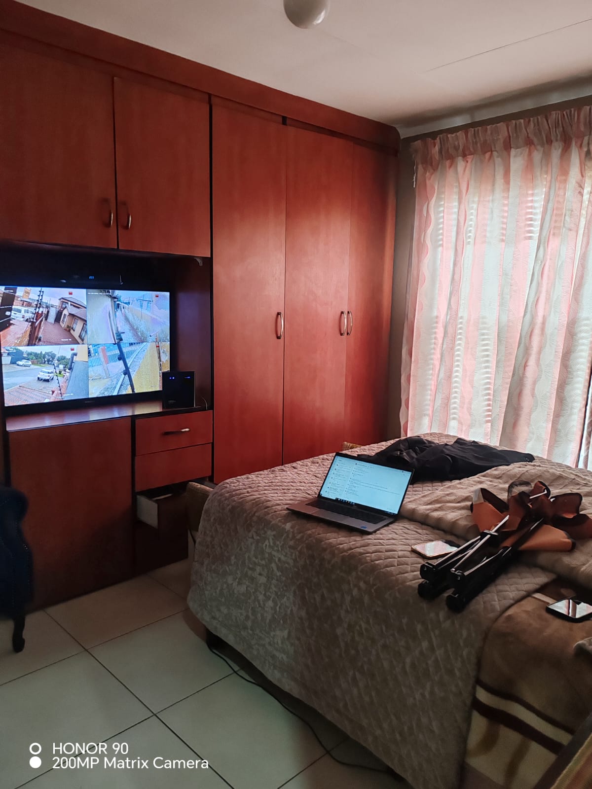3 bedroom house, 3 bathrooms, double garage, electric fence, cameras, 4 outside batchelors for rentals, automated gate