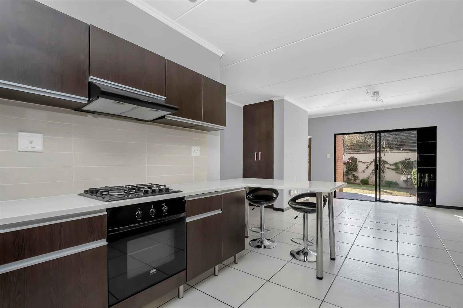 This stunning unit oozes space and privacy. Walk out onto the spacious patio showcasing a spacious established garden. Uninterrupted views across the beautiful Helderfontein Estate. The spacious living area flows onto the covered patio ideal for entertaining. The modern open plan kitchen has a gas hob, breakfast bar, ample cupboard space, Cesar stone tops and space for 3 appliances.