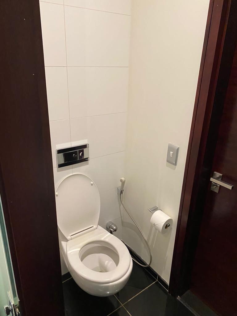 One Bedroom, one Bathroom leading from the bedroom (Separate access for guests), a kitchen equipped with a fridge, microwave, 2in1 washer and dryer, as well as a dishwasher.