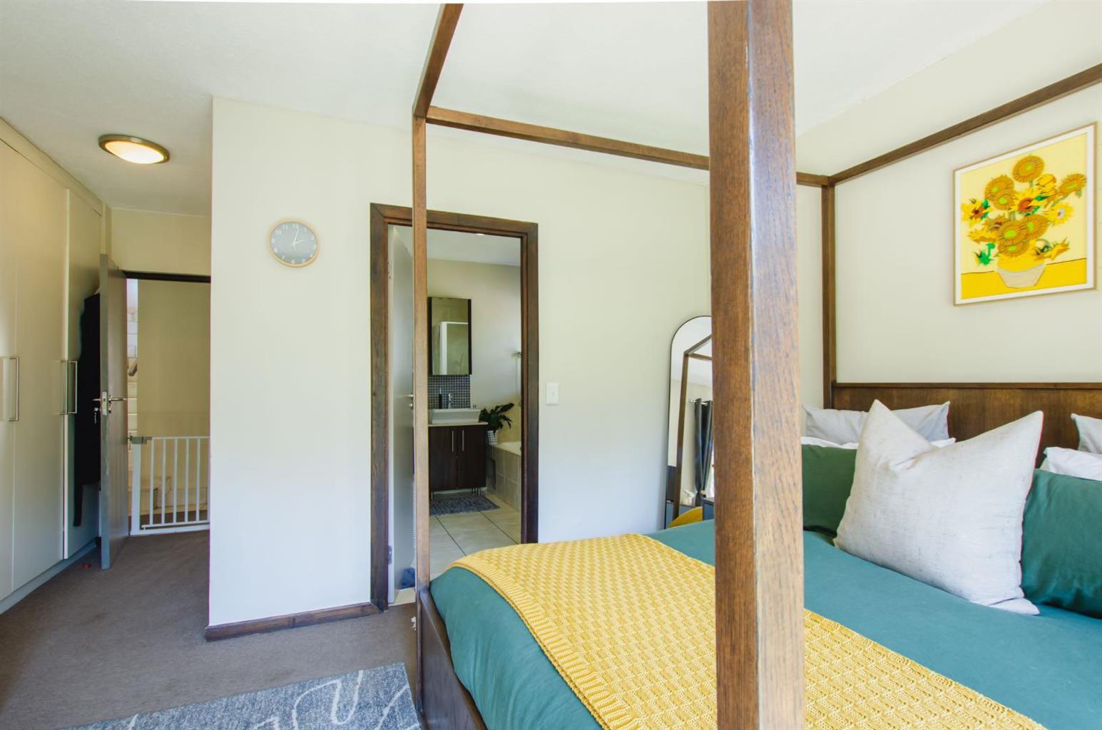 Discover refined living in this elegant 3-bedroom double-storey townhouse, set in one of Sandtons most exclusive estates. A rare blend of modern finishes and natural tranquillity, this home offers comfort, sophistication, and charm.