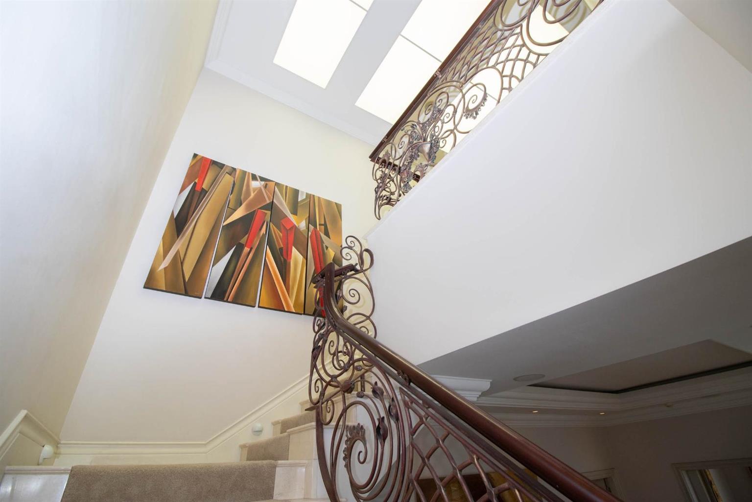 Ascending the sweeping staircase, you will discover three beautifully appointed bedrooms on the upper level. The master suite is a sanctuary fit for royalty, featuring a generously sized bedroom, a walk-in dressing room, and an opulent bathroom that exudes elegance and luxury. The 2nd and 3rd bedrooms offer ample space and stunning views, providing a tranquil retreat for relaxation and rejuvenation.