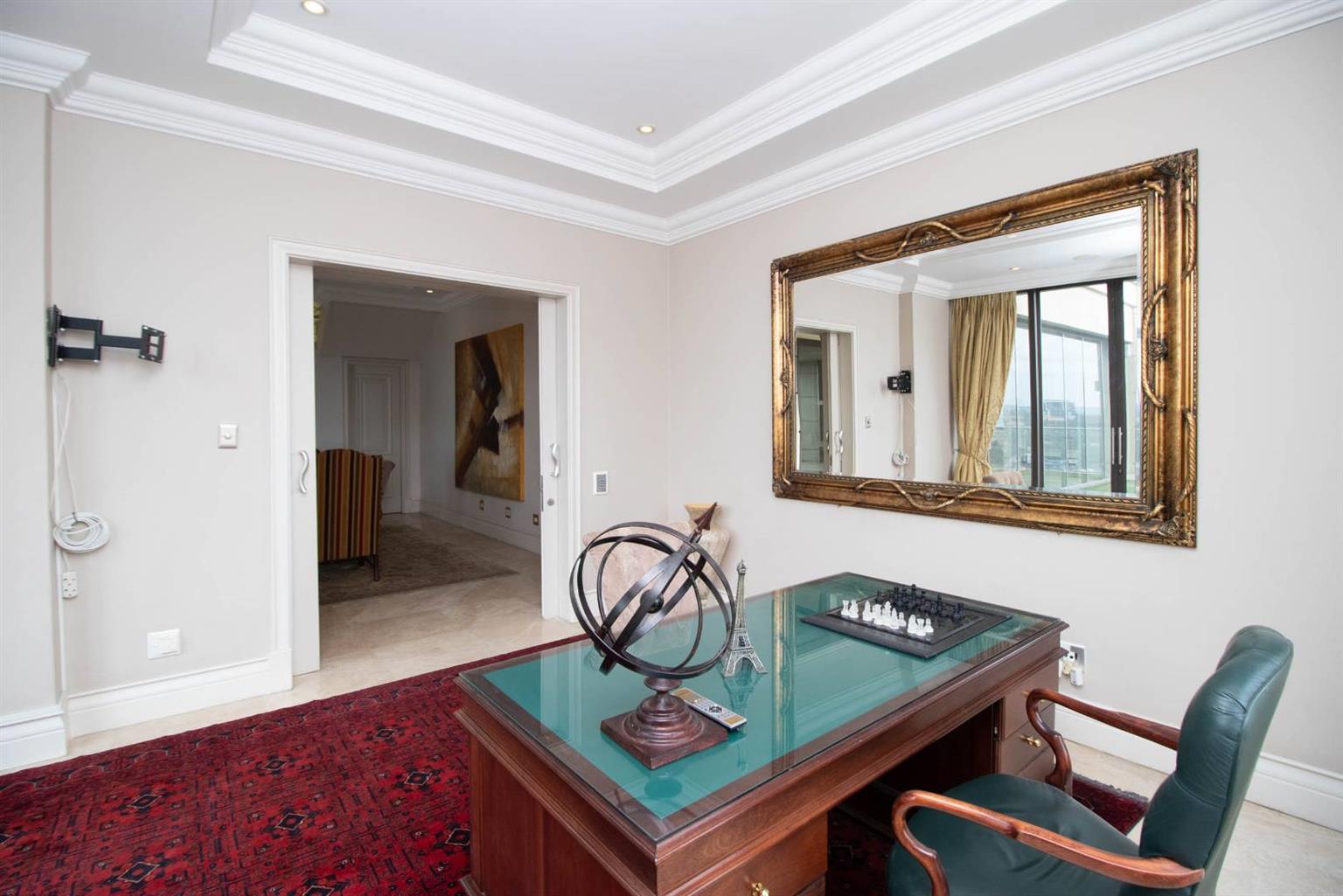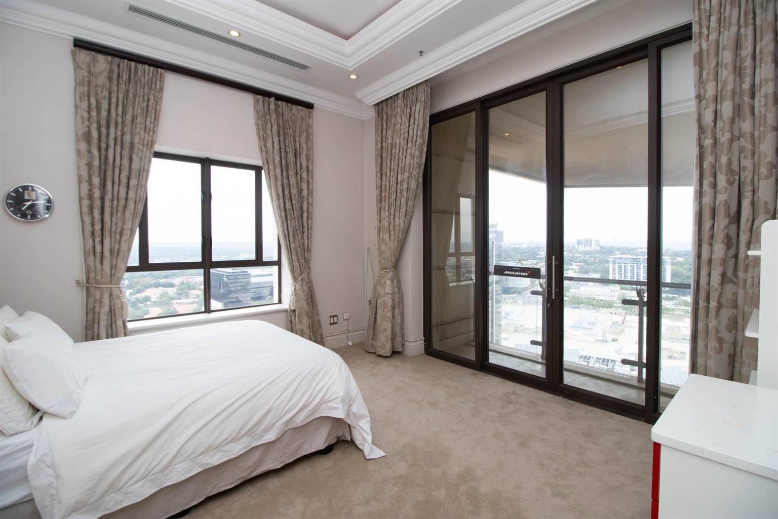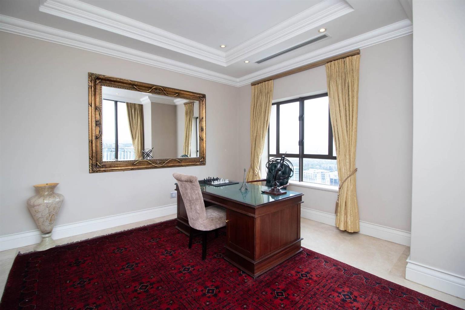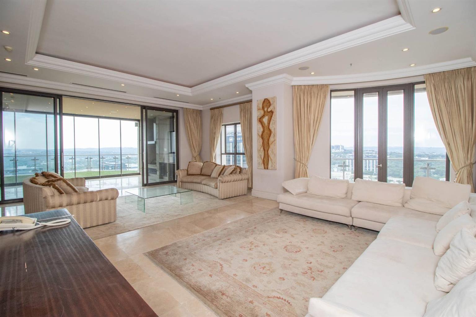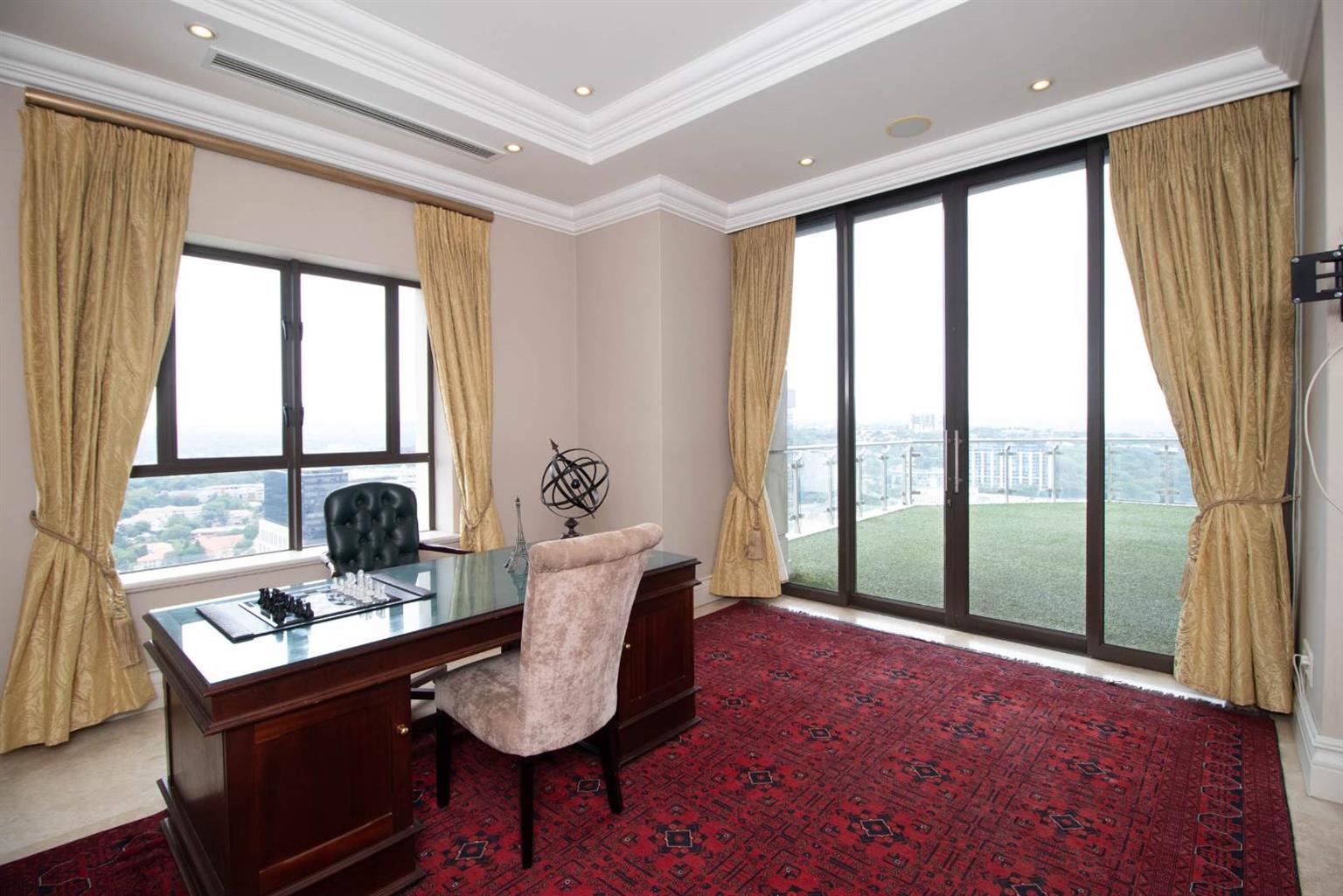 This stunning double-story penthouse offers unparalleled views of the Sandton skyline, embodying luxury living at its finest. The exquisite design and superior craftsmanship are evident in every corner of this exclusive residence. Upon entering the penthouse, you are greeted by a grand entrance hall that leads into a spacious double-volume living area, a sophisticated dining room, and a private study. The kitchen boasts top-of-the-line fixtures and fittings, creating a culinary haven for discerning homeowners. Additionally, the 4th bedroom features a state-of-the-art bathroom and can serve as a separate butler's pad with its own entrance. The second lounge opens up to an expansive balcony, providing breathtaking panoramic views that will take your breath away.