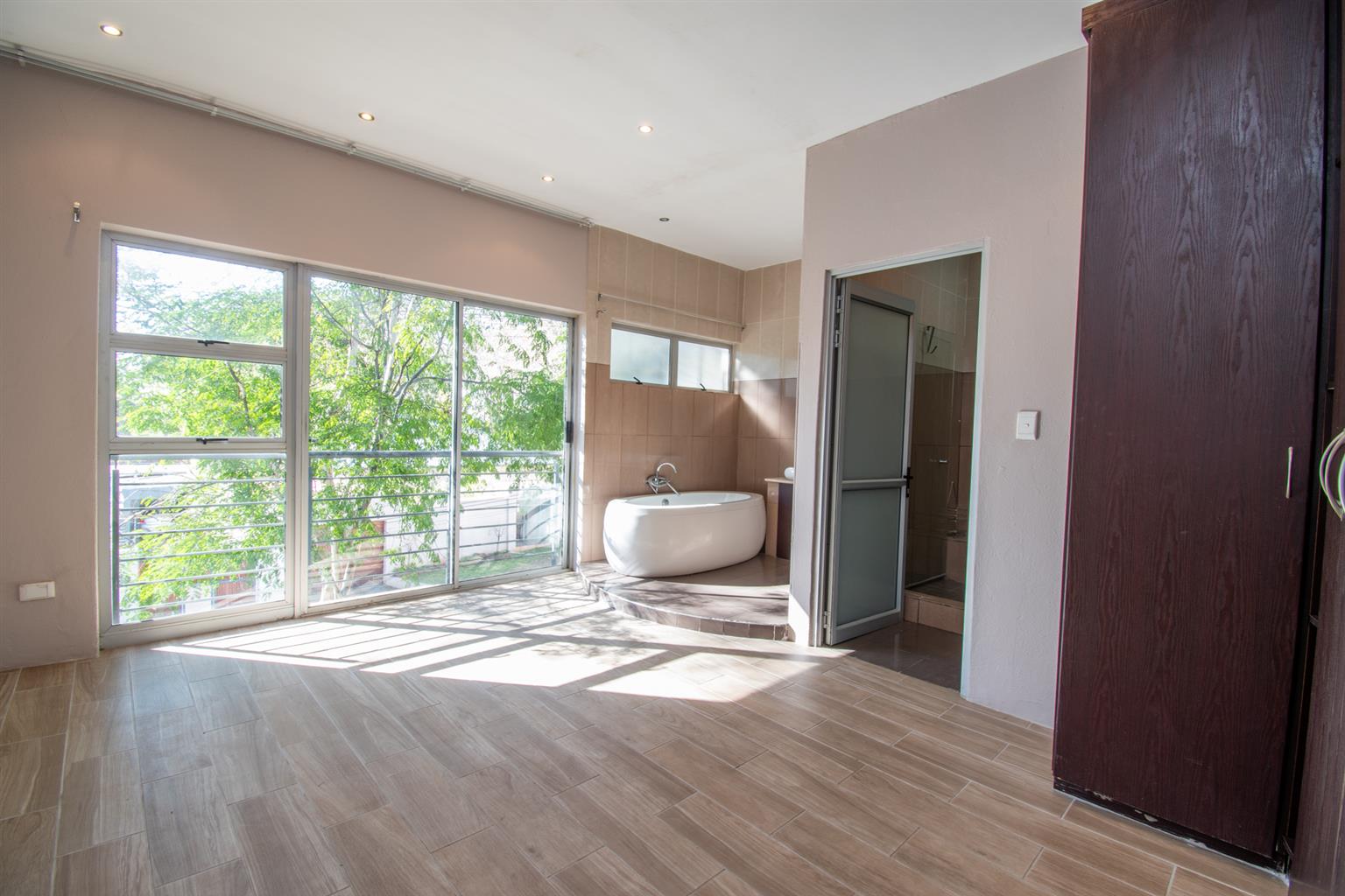 The Main Bedroom has East Facing floor to ceiling windows, built in wardrobes and an ensuite Bathroom with a bath, separate shower, toilet and sink.