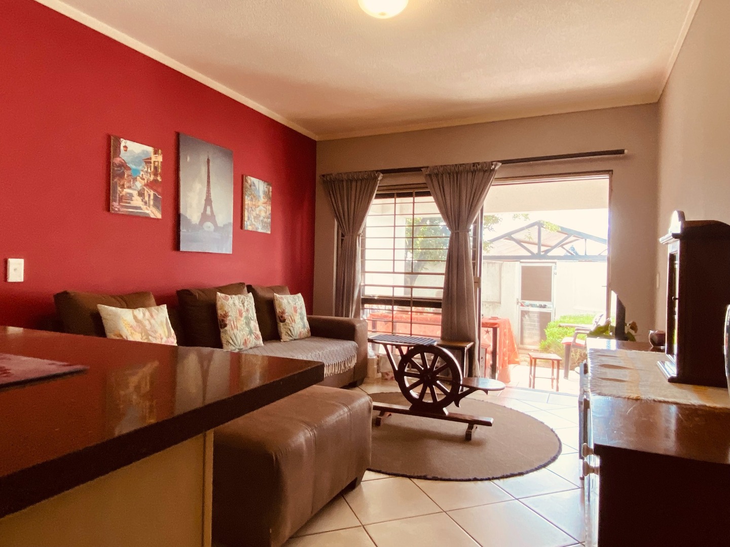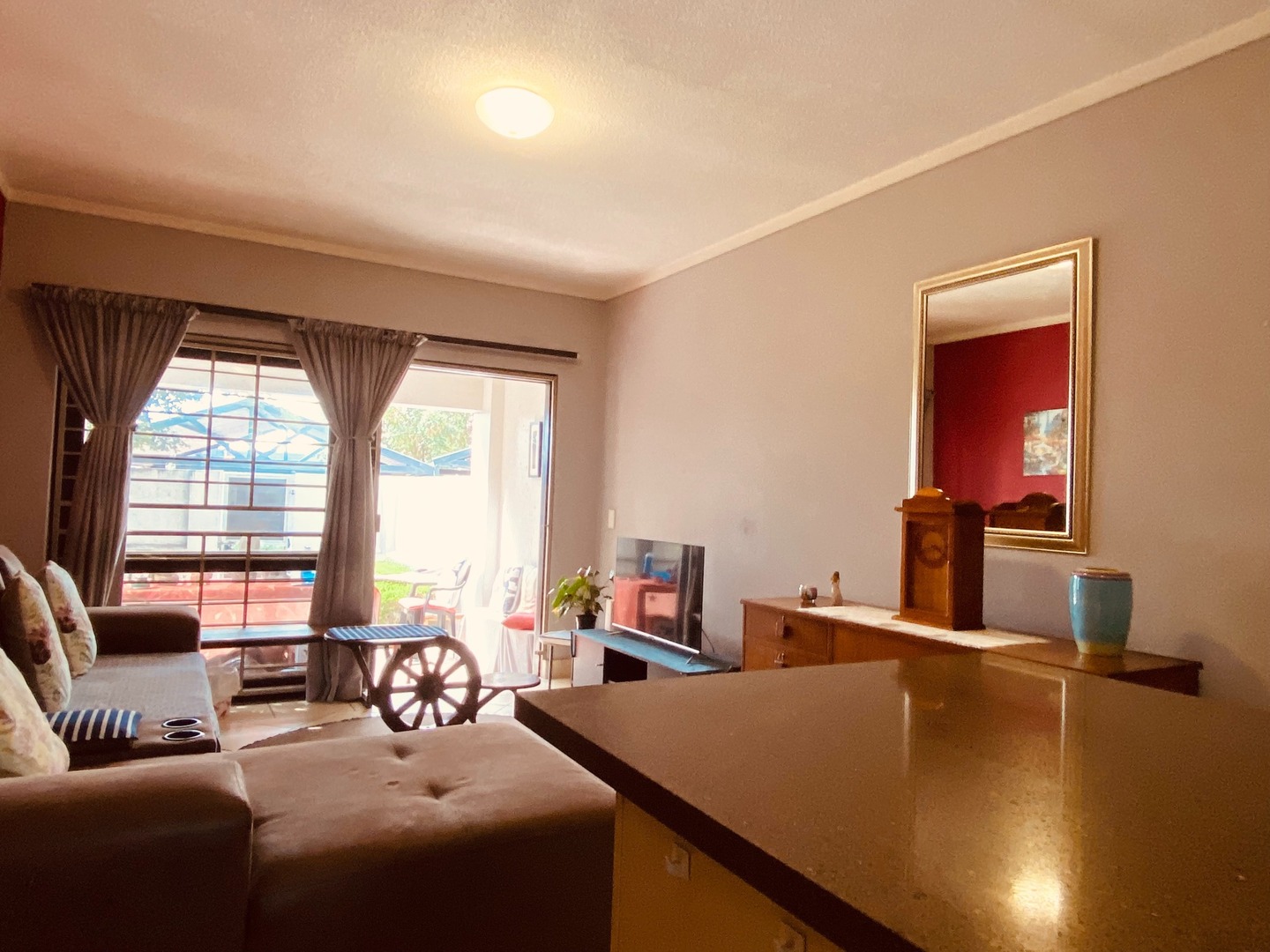 The lounge opens to a private covered patio and garden, offering a peaceful retreat. Currently tenanted with a rental income of R7,300 per month, this townhouse presents a fantastic investment.