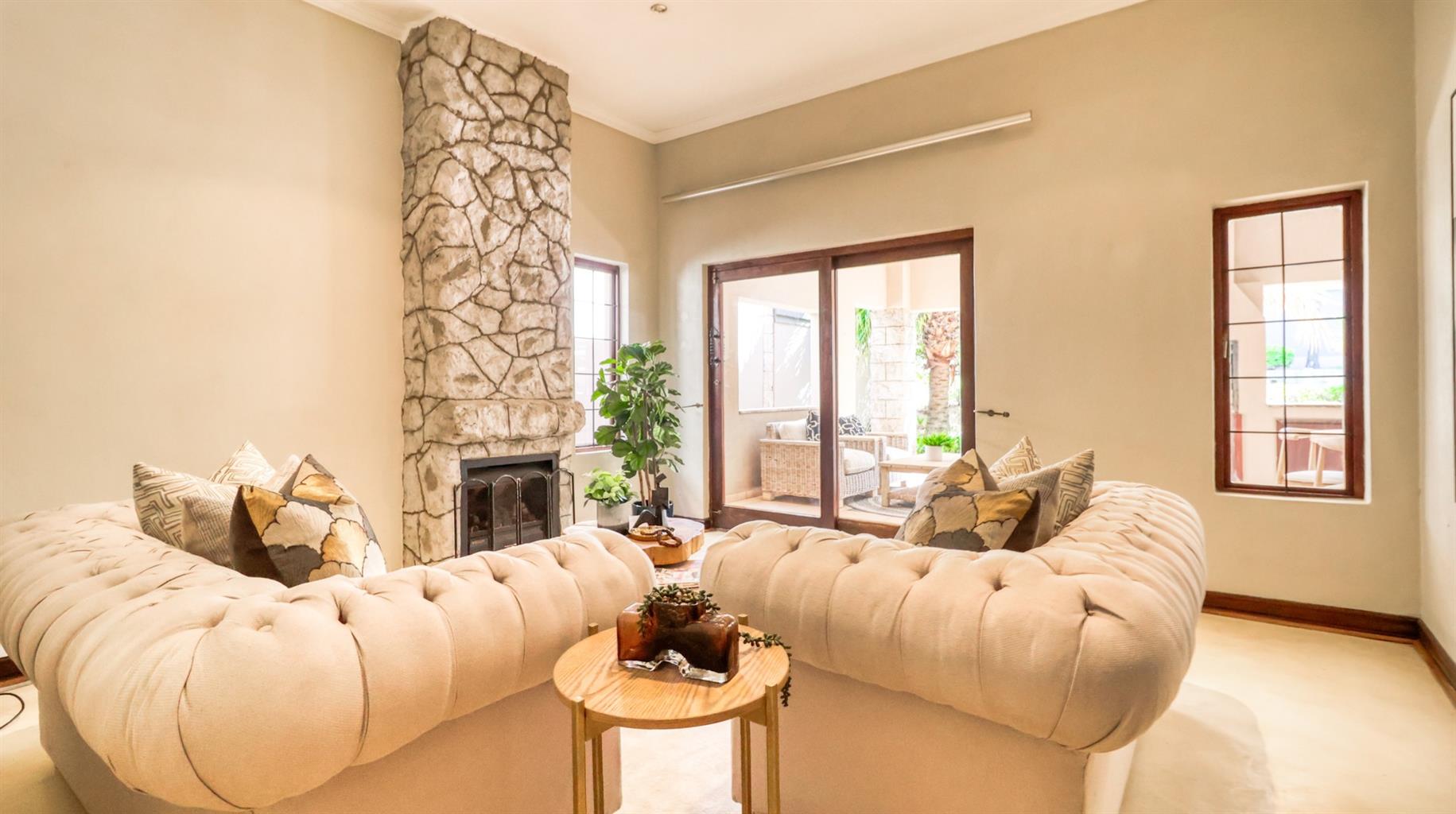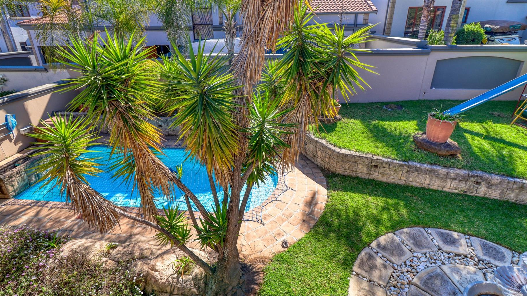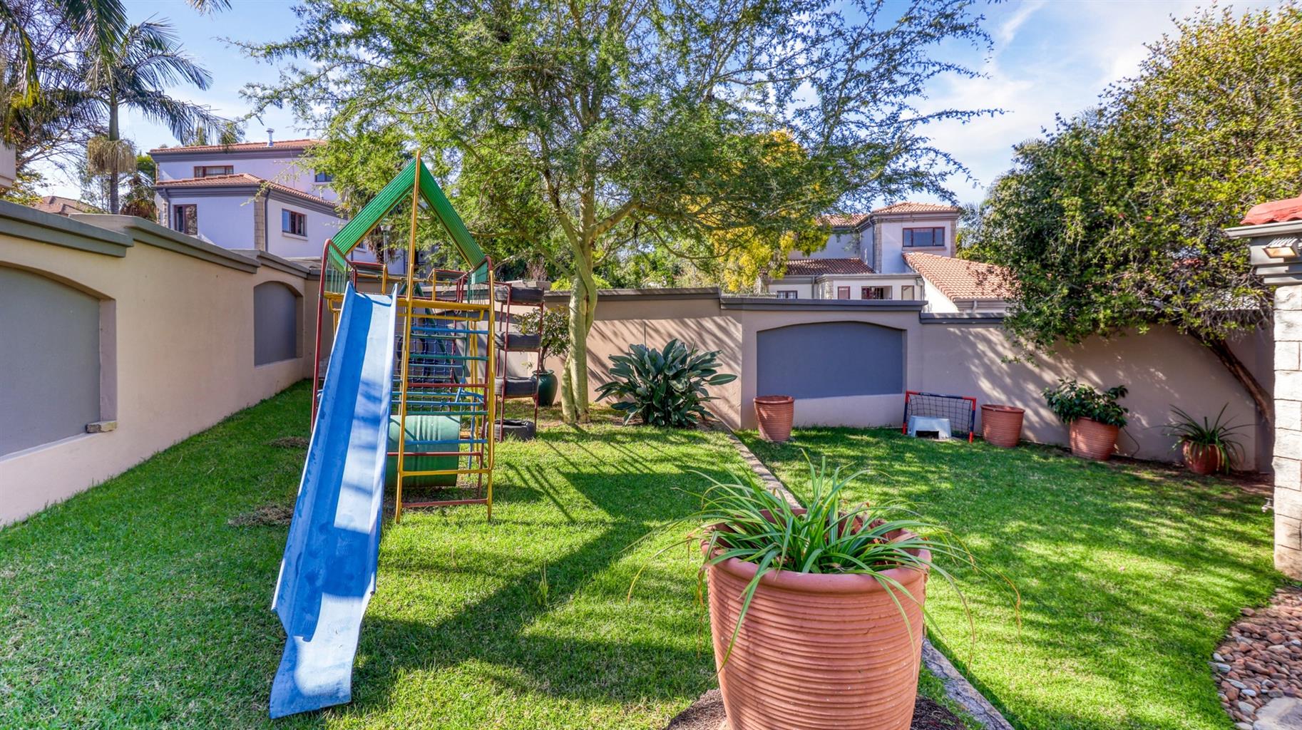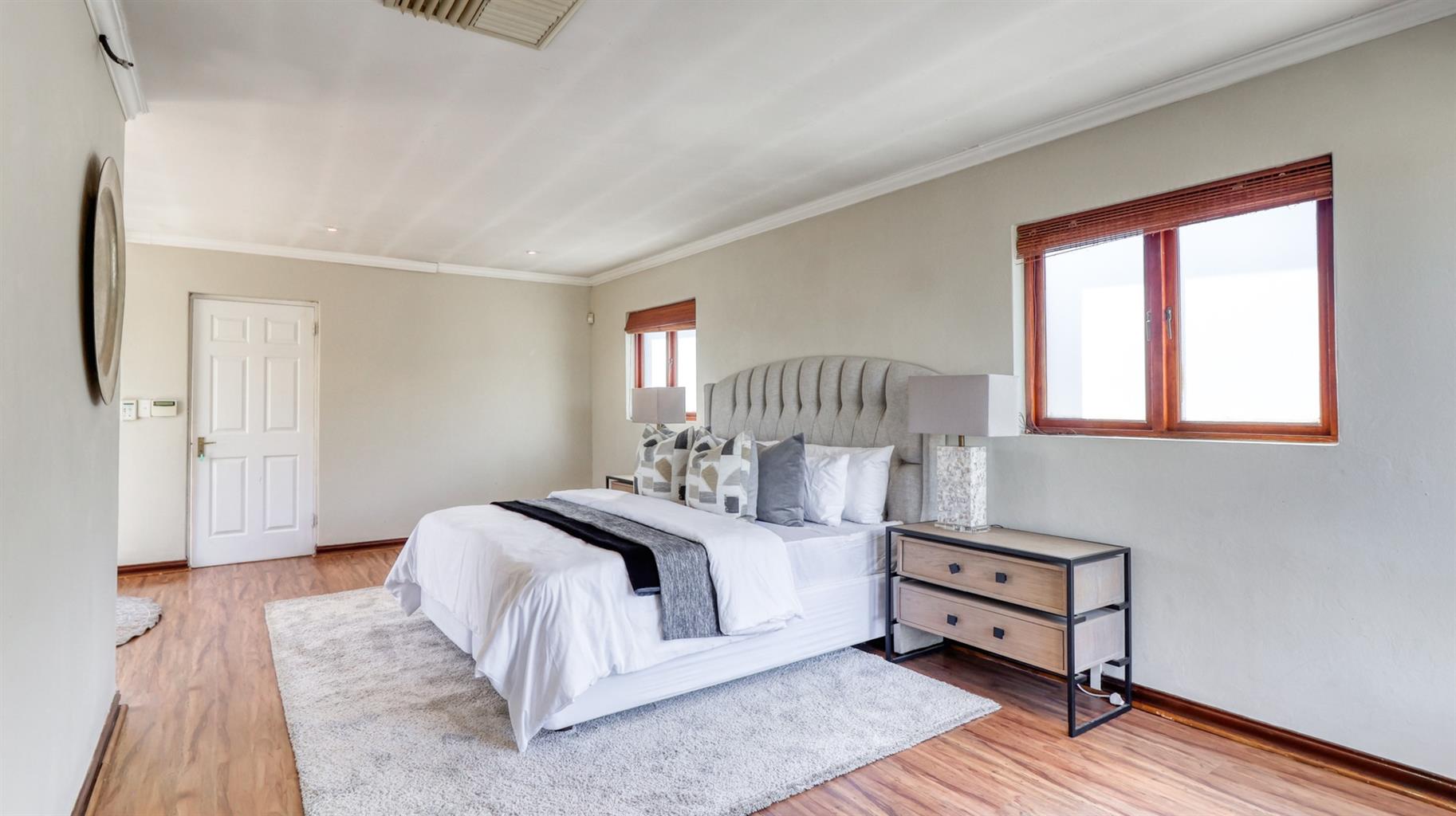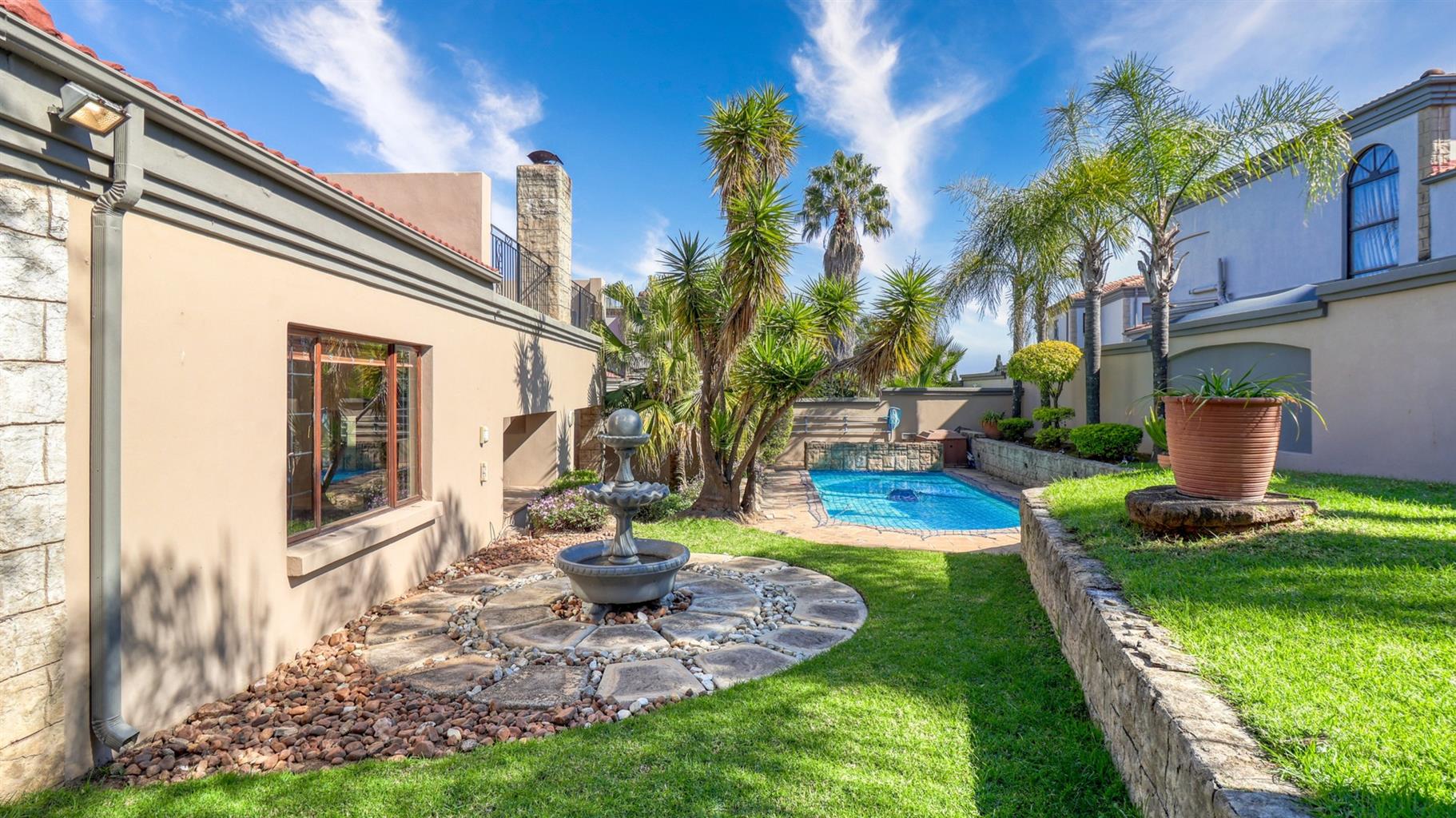 Entertain effortlessly on the covered patio with built-in gas braai, overlooking the landscaped garden and pool. Upstairs boasts four bedrooms with central cooling, two full bathrooms, and a main en-suite with private balcony and pyjama lounge.