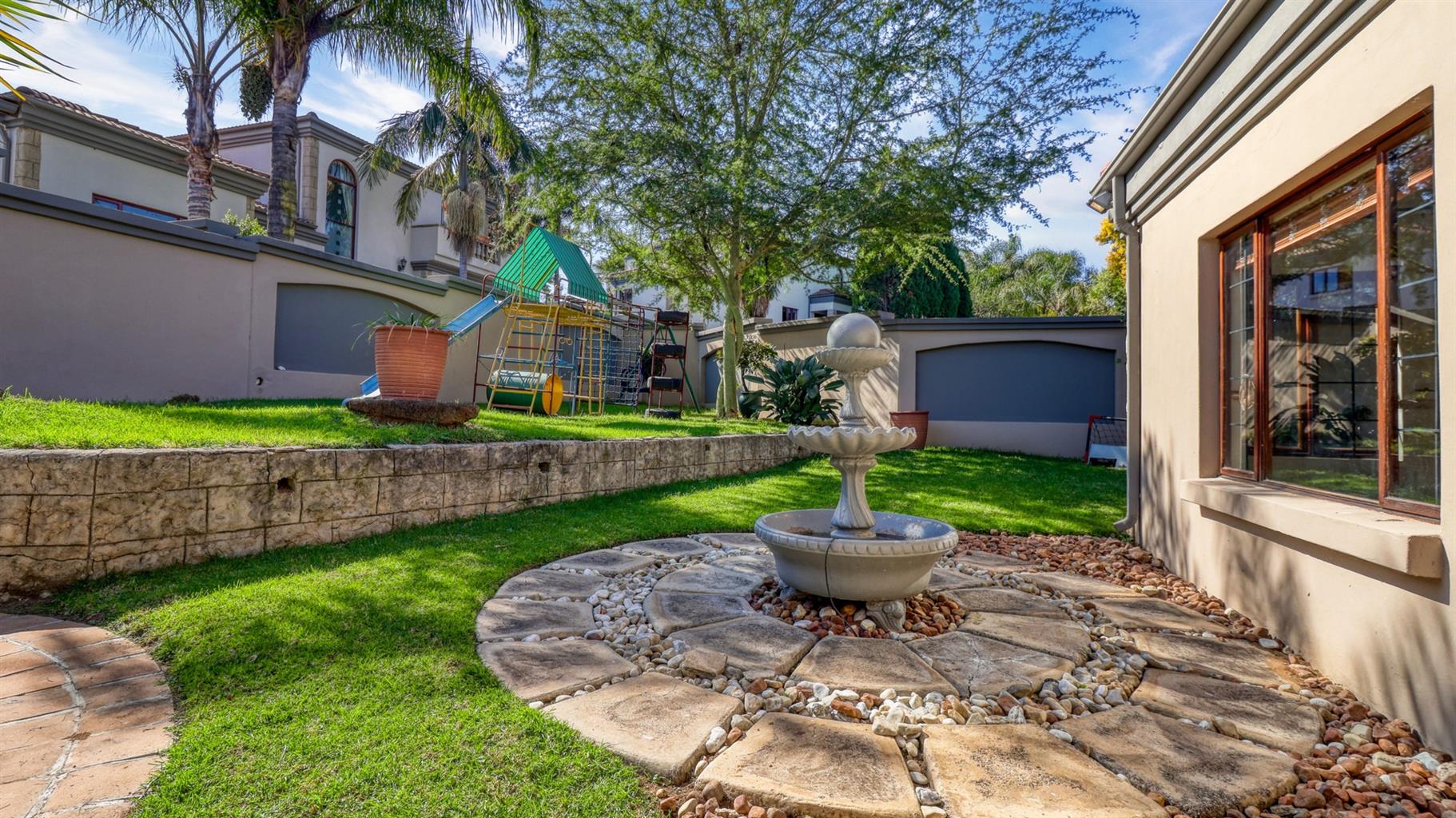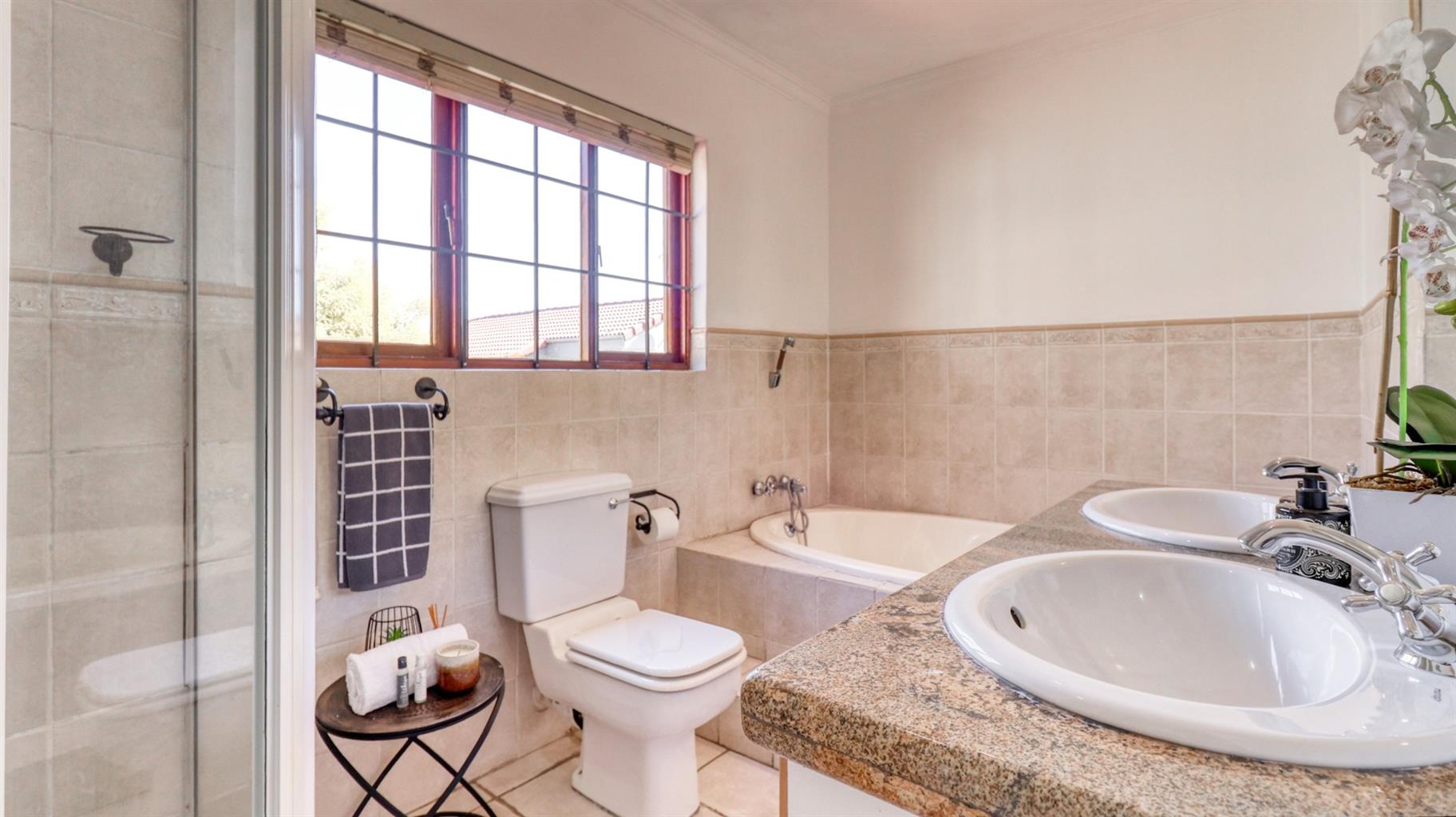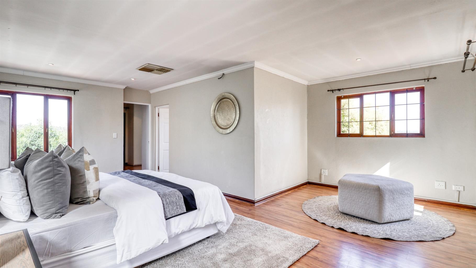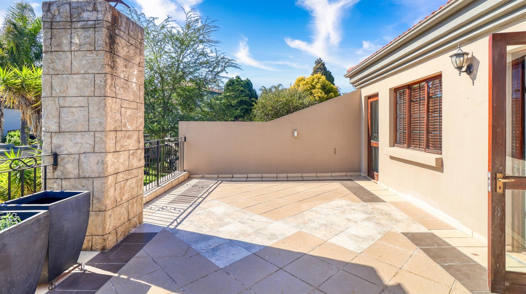 Entertain effortlessly on the covered patio with built-in gas braai, overlooking the landscaped garden and pool. Upstairs boasts four bedrooms with central cooling, two full bathrooms, and a main en-suite with private balcony and pyjama lounge.