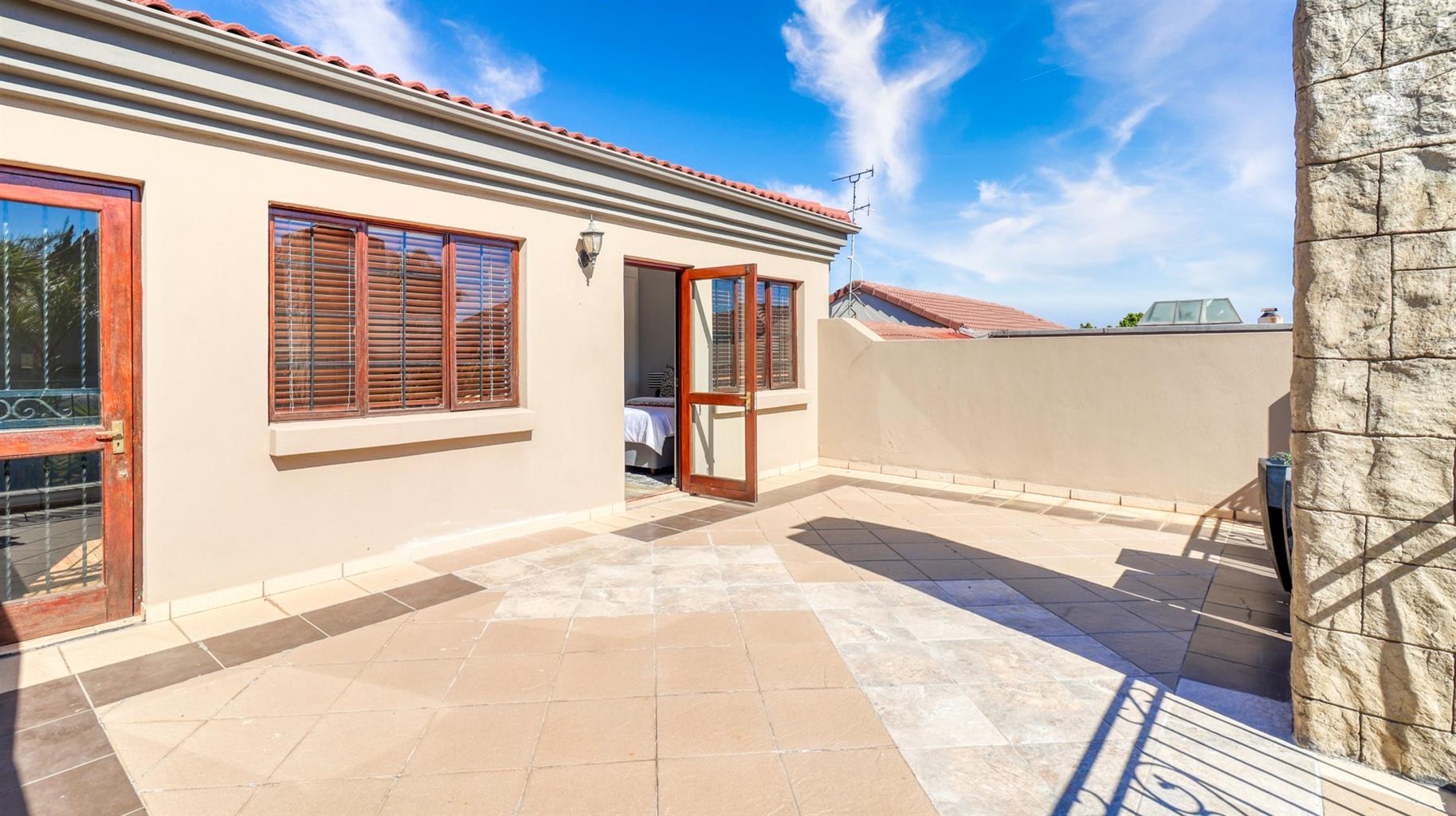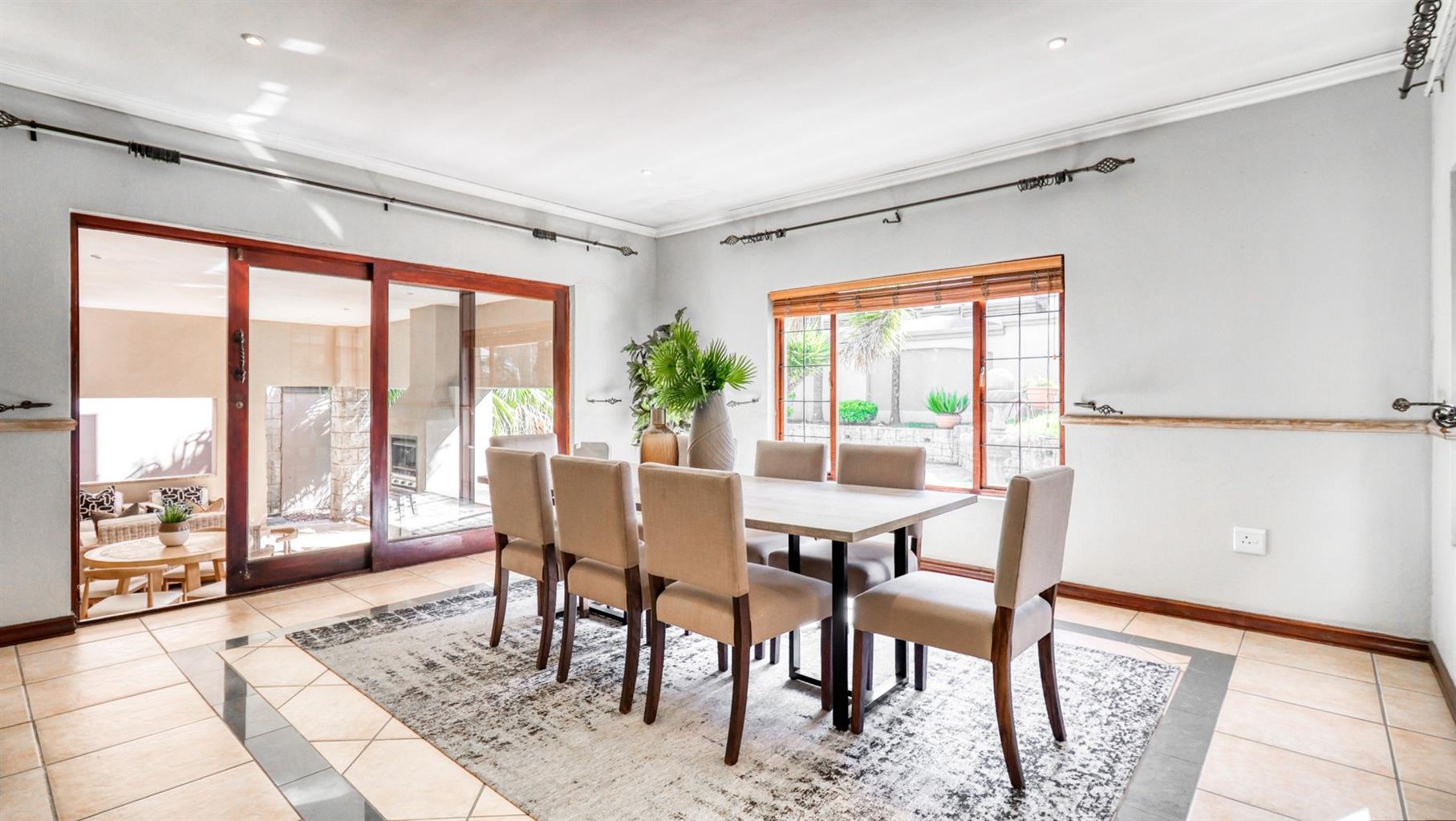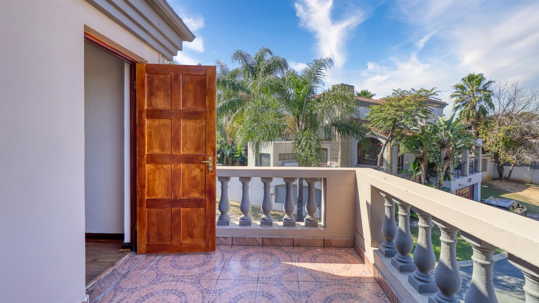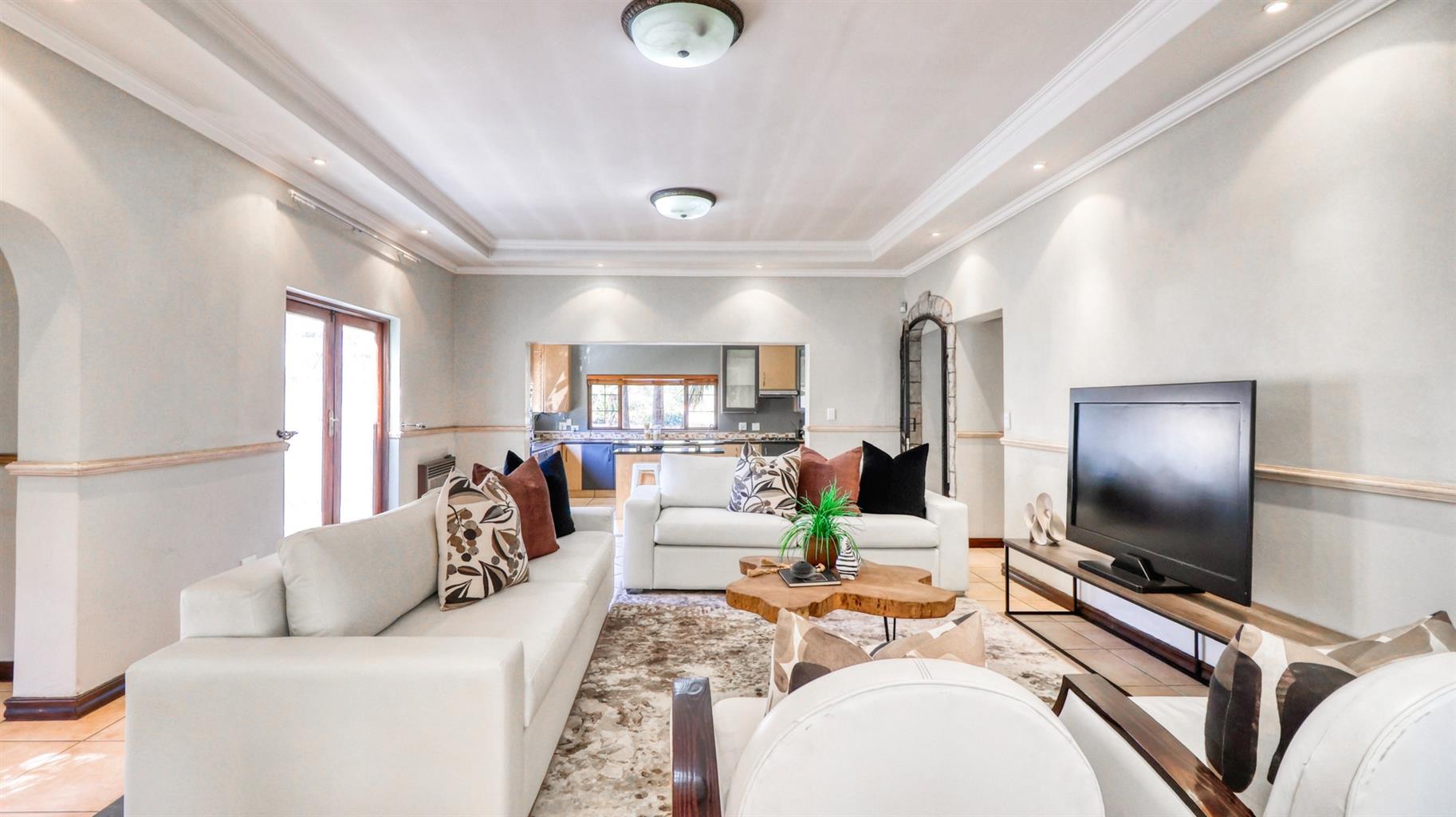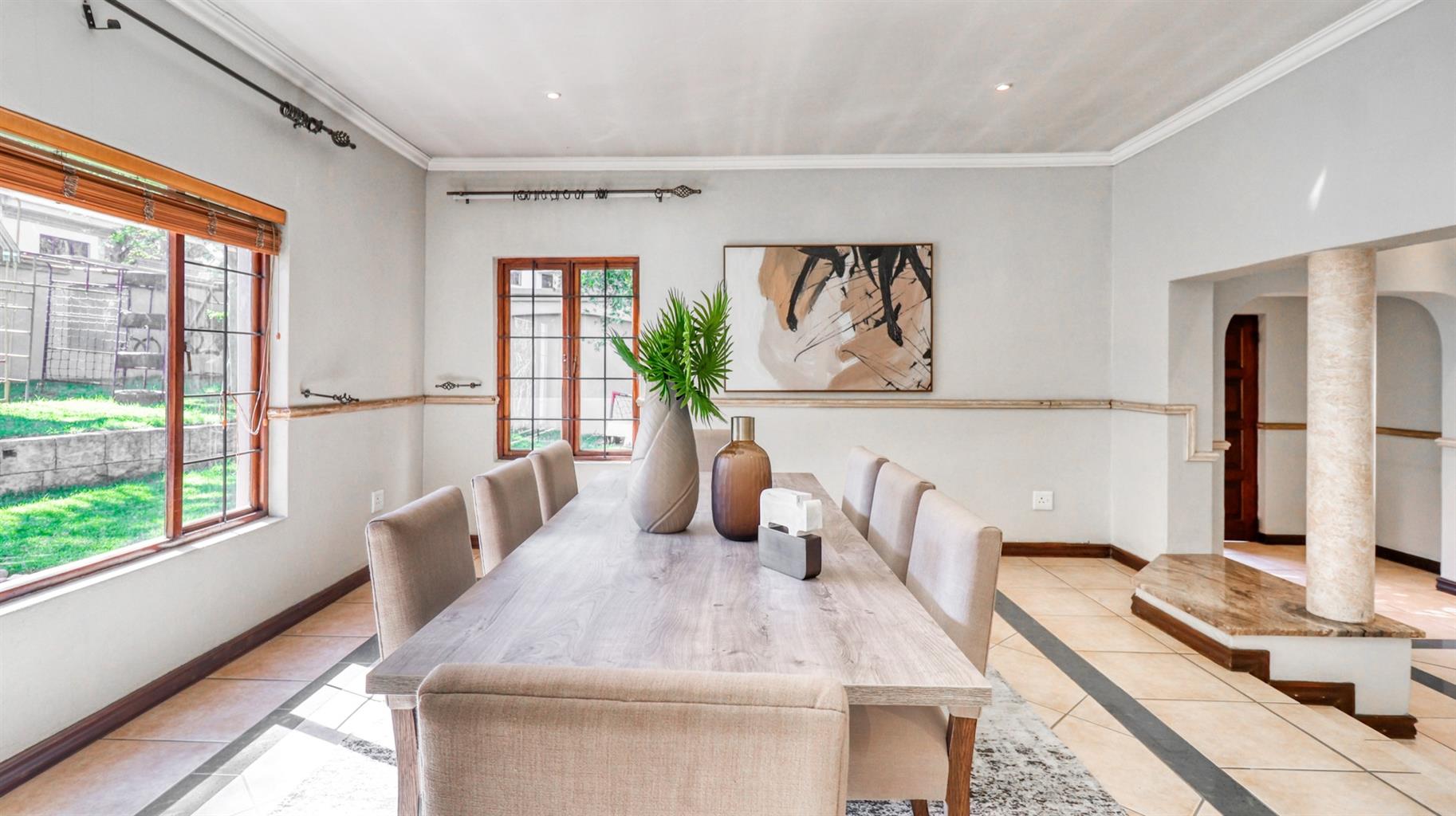 Entertain effortlessly on the covered patio with built-in gas braai, overlooking the landscaped garden and pool. Upstairs boasts four bedrooms with central cooling, two full bathrooms, and a main en-suite with private balcony and pyjama lounge.