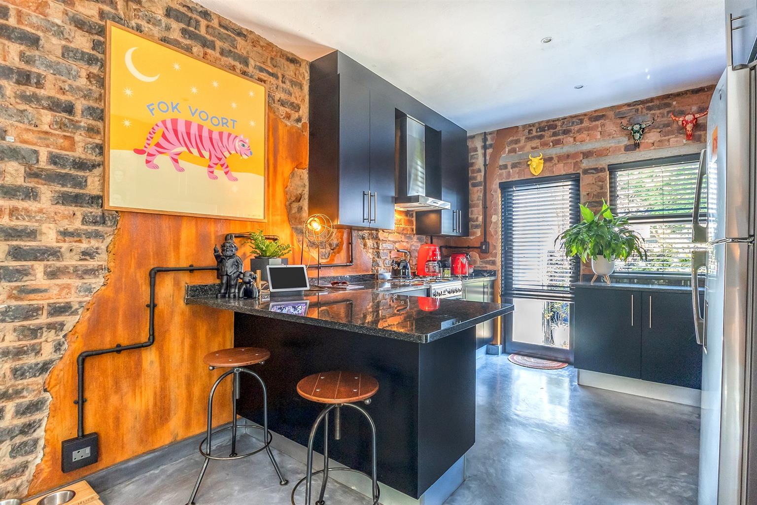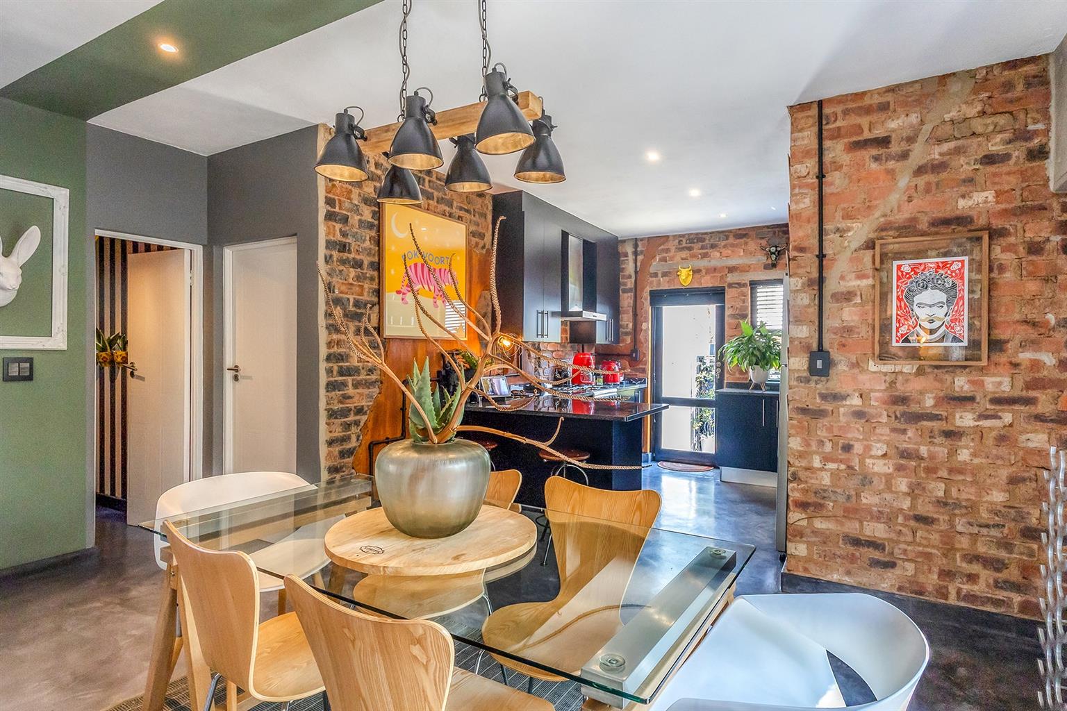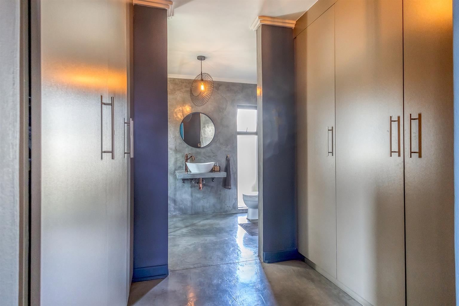 The open-plan living and dining spaces flow effortlessly into a sleek chef’s kitchen, with sliding doors leading to a covered patio, built-in braai, and beautifully landscaped wrap-around garden, perfect for entertaining.