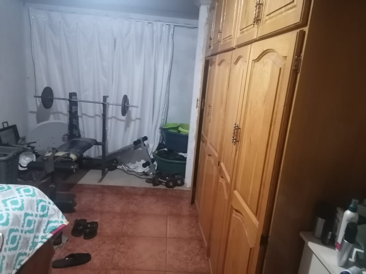 2 bedrooms (main with built-in cupboards)