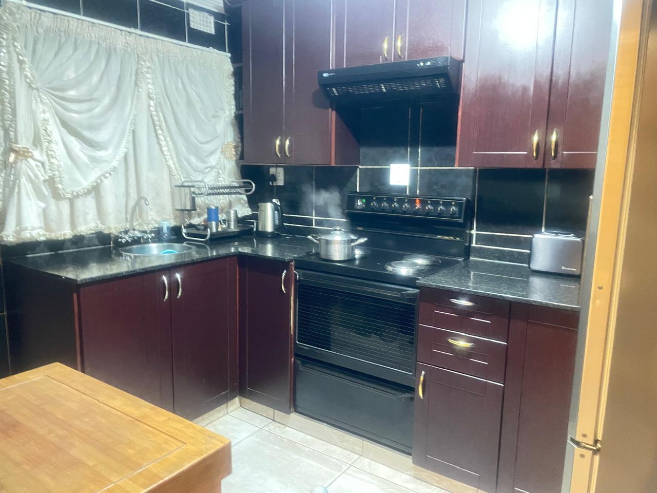 The heart of the home is a beautiful kitchen, complete with an oven, stove, hob, and abundant cupboard space. Whether you're preparing a quick meal or hosting a dinner party, this kitchen is designed to cater to all your culinary needs.