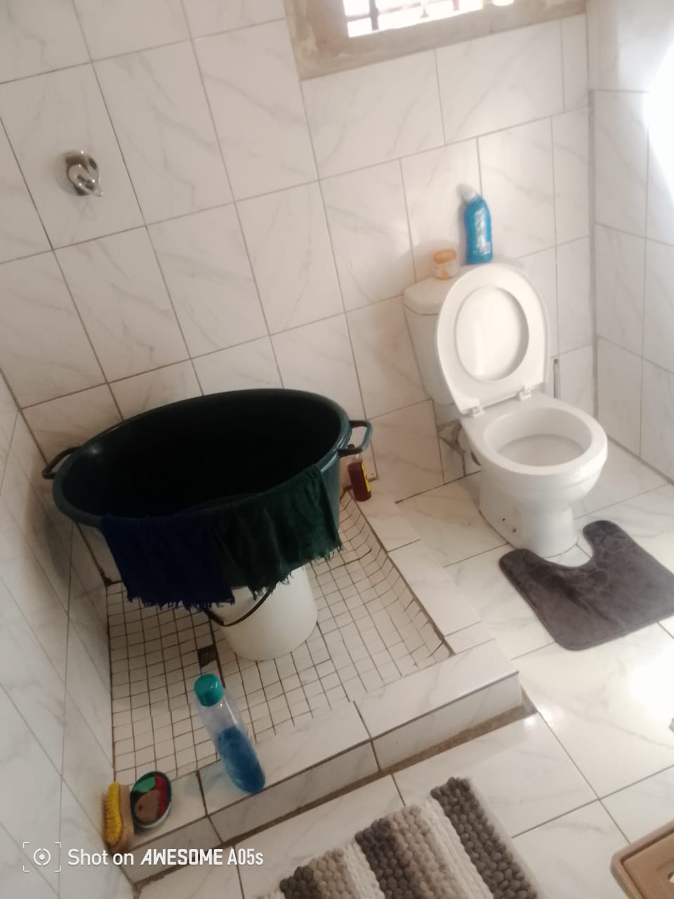 This large bachelor unit, the size of a double garage (8m x 6m), offers ample space and can easily be divided into two roomy areas. It features an ensuite bathroom with shower and toilet, a ceiling, secure burglar bars and a car parking space. The unit is situated in a fully fenced yard with lockable gates, there is one other tenant in the property—ensuring a quiet and private living environment.