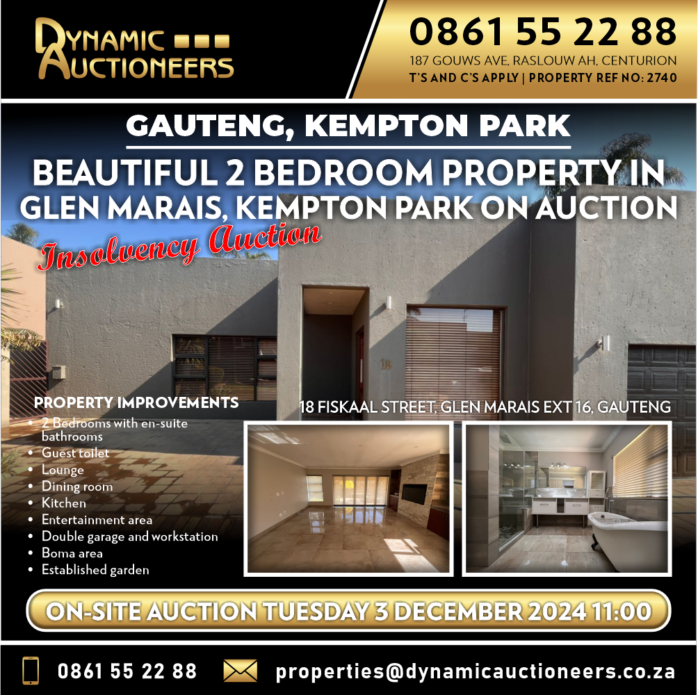 Contact us - 086 155 2288view more or properties@dynamicauctioneers.co.zaview email...