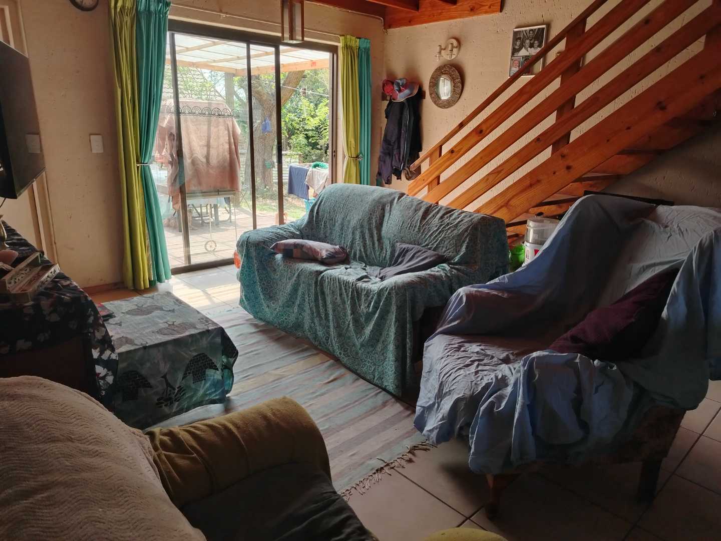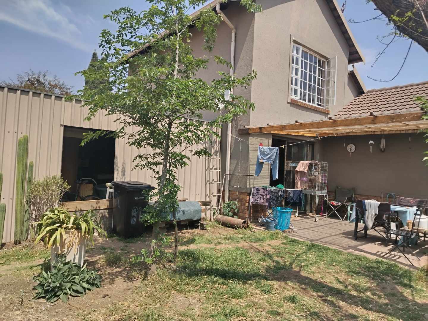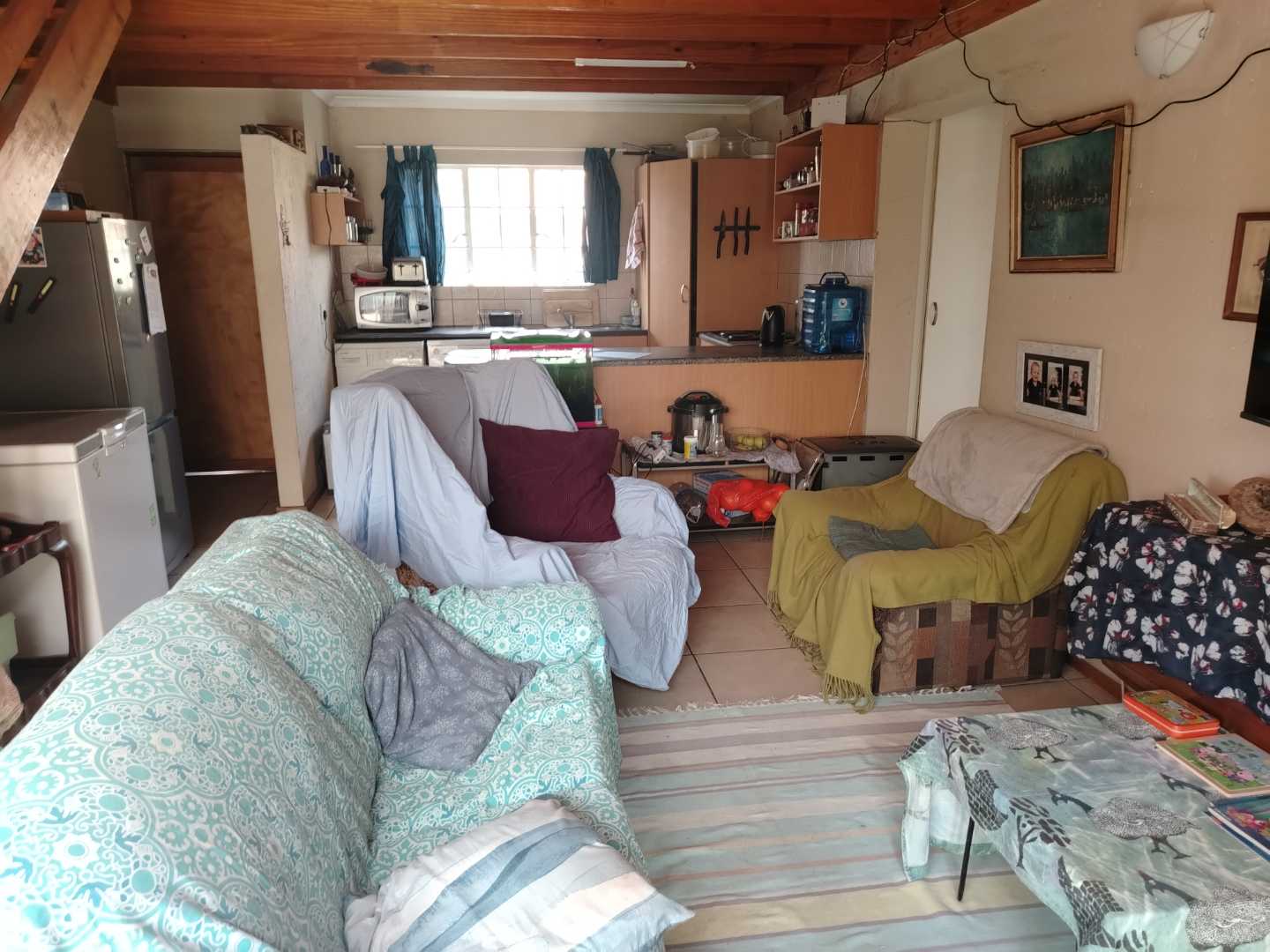 The home boasts two spacious, tiled bedrooms, offering comfort and tranquility. One bedroom is conveniently located downstairs, while the second bedroom is situated upstairs, providing added privacy.