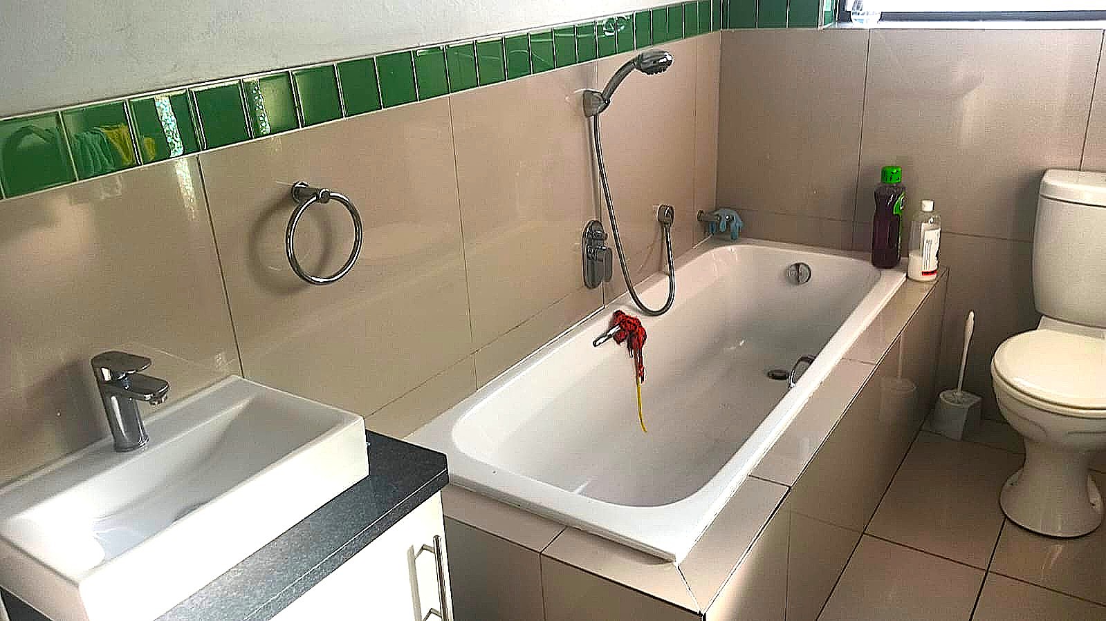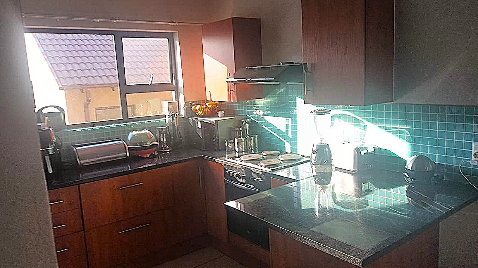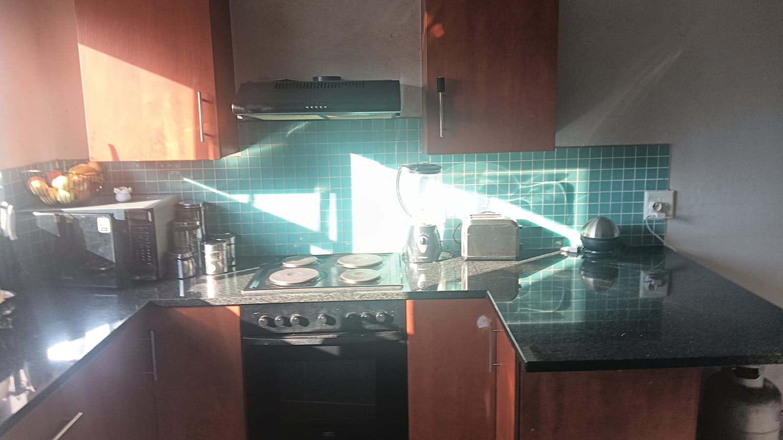 Open-plan Kitchen that includes plenty of Mahogany-style Built-in Cupboards, Granite working tops, an Electric Sove, a lovely Breakfast Nook to catch a quick bite to eat, plus a convenient separate Scullery / Laundry, which not only keeps your kitchen clutter-free but also makes laundry day a breeze.