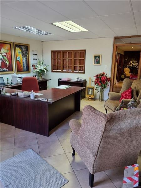 Additional amenities include a kitchen, ablution facilities, and a reception area to welcome clients. The unit is equipped with four air conditioning units, ensuring a comfortable working environment year-round. Six dedicated parking bays provide ample space for staff and clients, making accessibility easy and convenient.