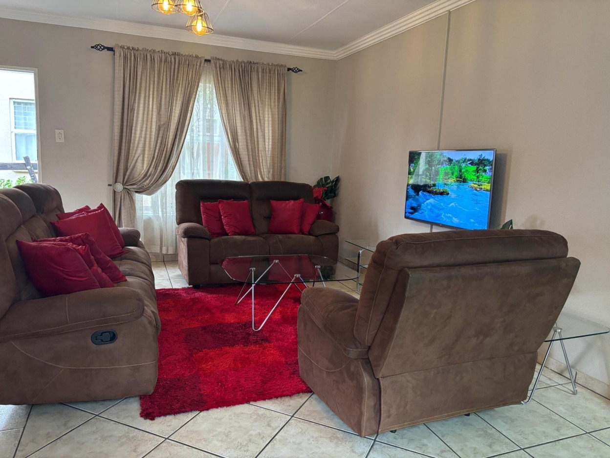 This well-sized 3-bedroom, 2-bathroom cluster offers comfortable and convenient living in a secure, well-maintained complex. Fully tiled throughout, the home features generously sized bedrooms and a versatile lounge area spacious enough to accommodate a dining room setup.