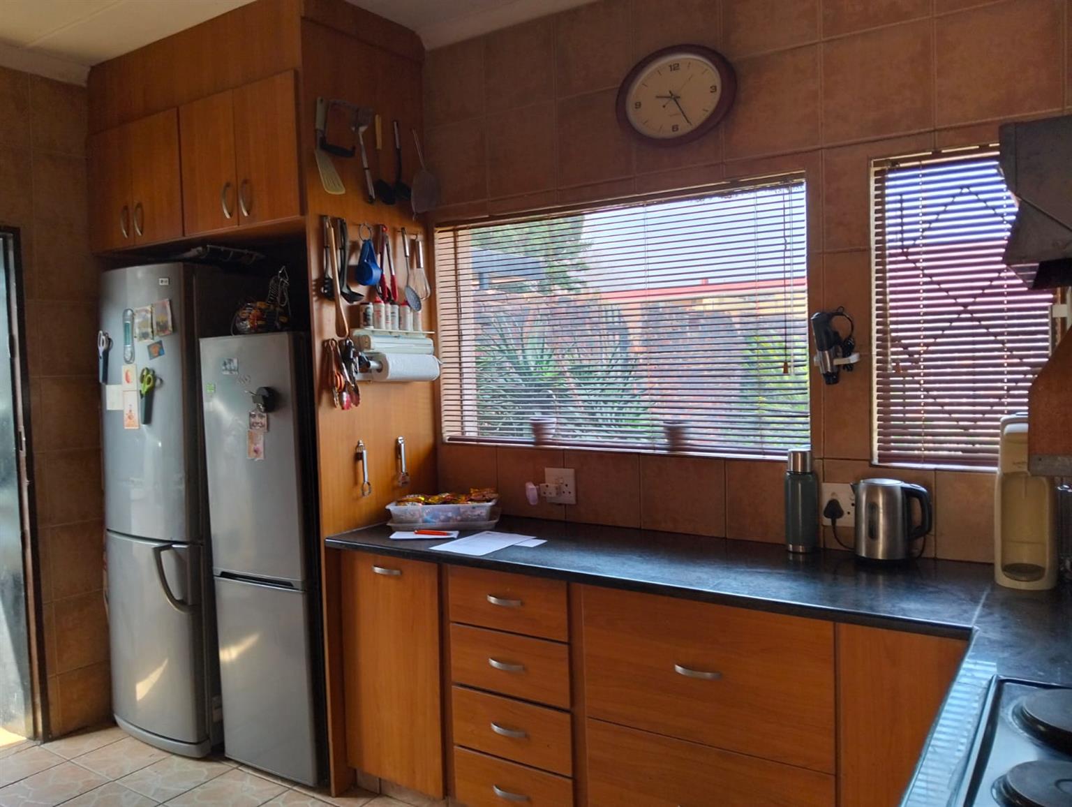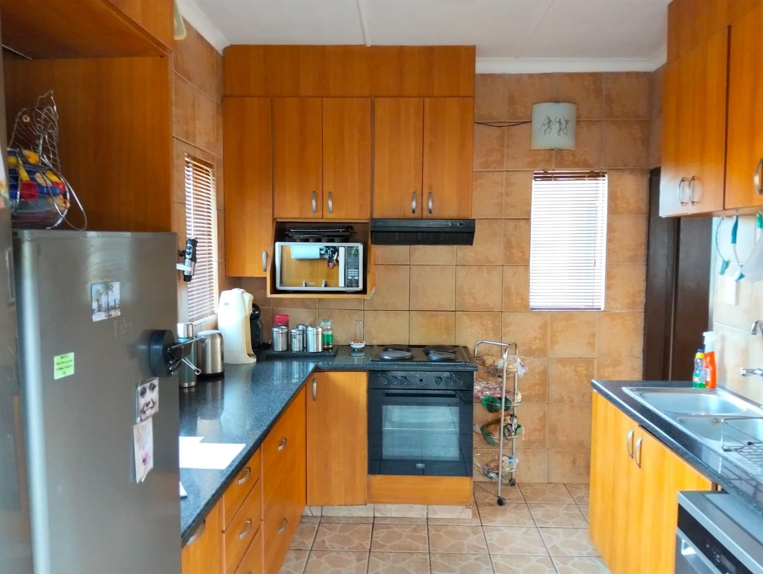 Preparing food will be a blast in the neat Kitchen with ample cupboards to the ceiling, can fit a double fridge and have a double sink.