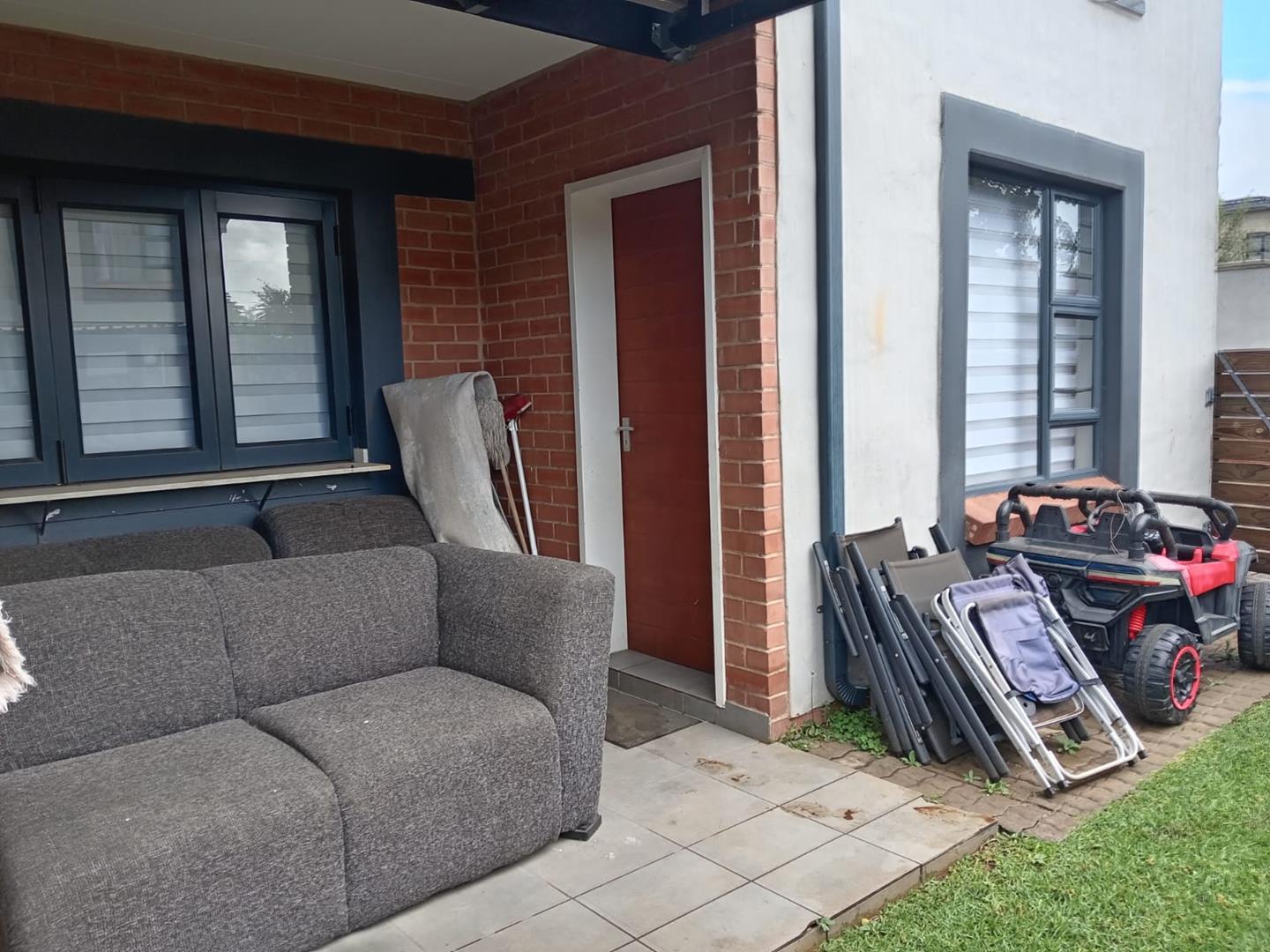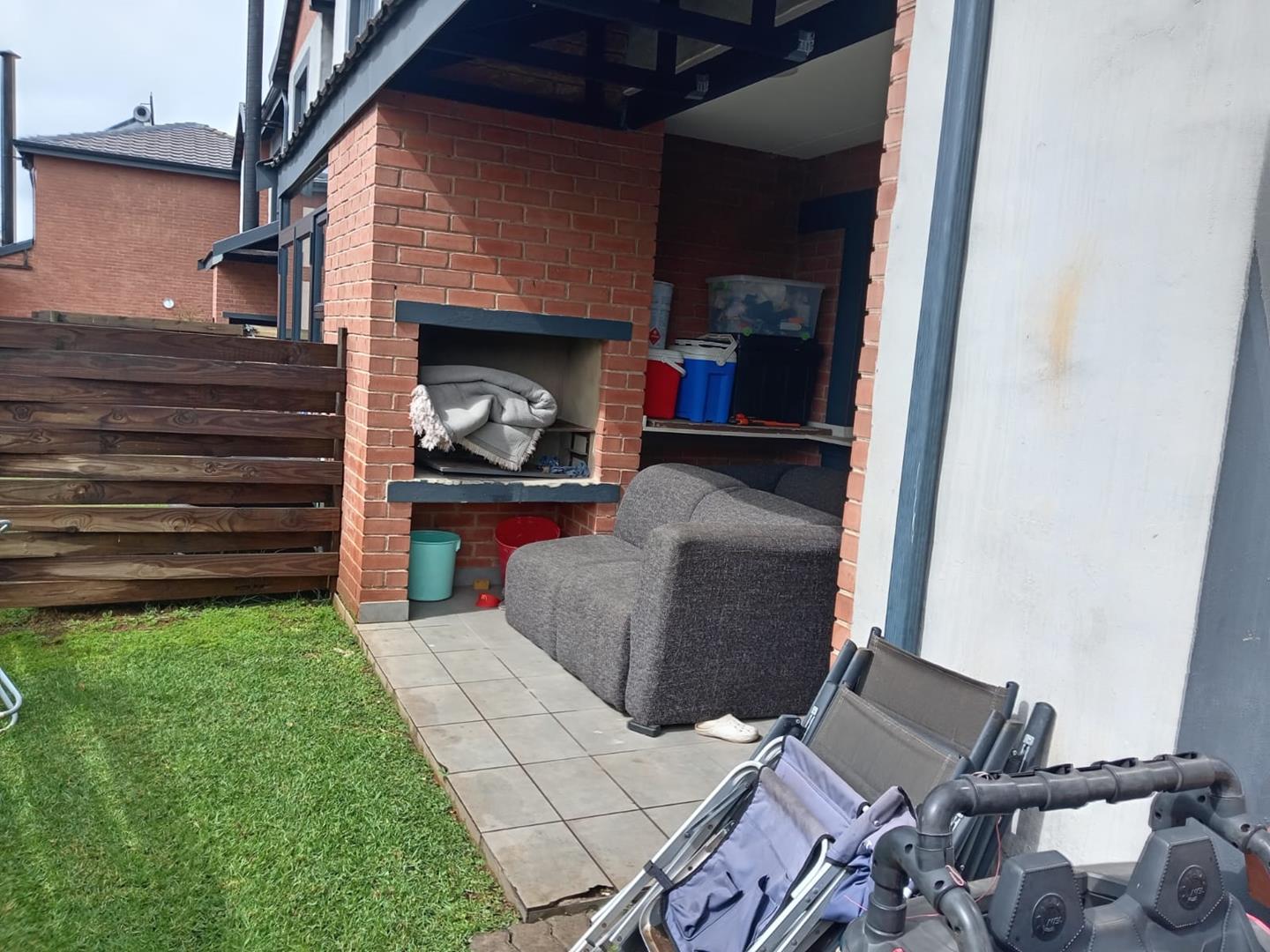 This duplex consists of 3 bedrooms, 2 and half bathrooms, open plan lounge and dinning room combined, kitchen with gas stove, patio with built in braai and private garden.