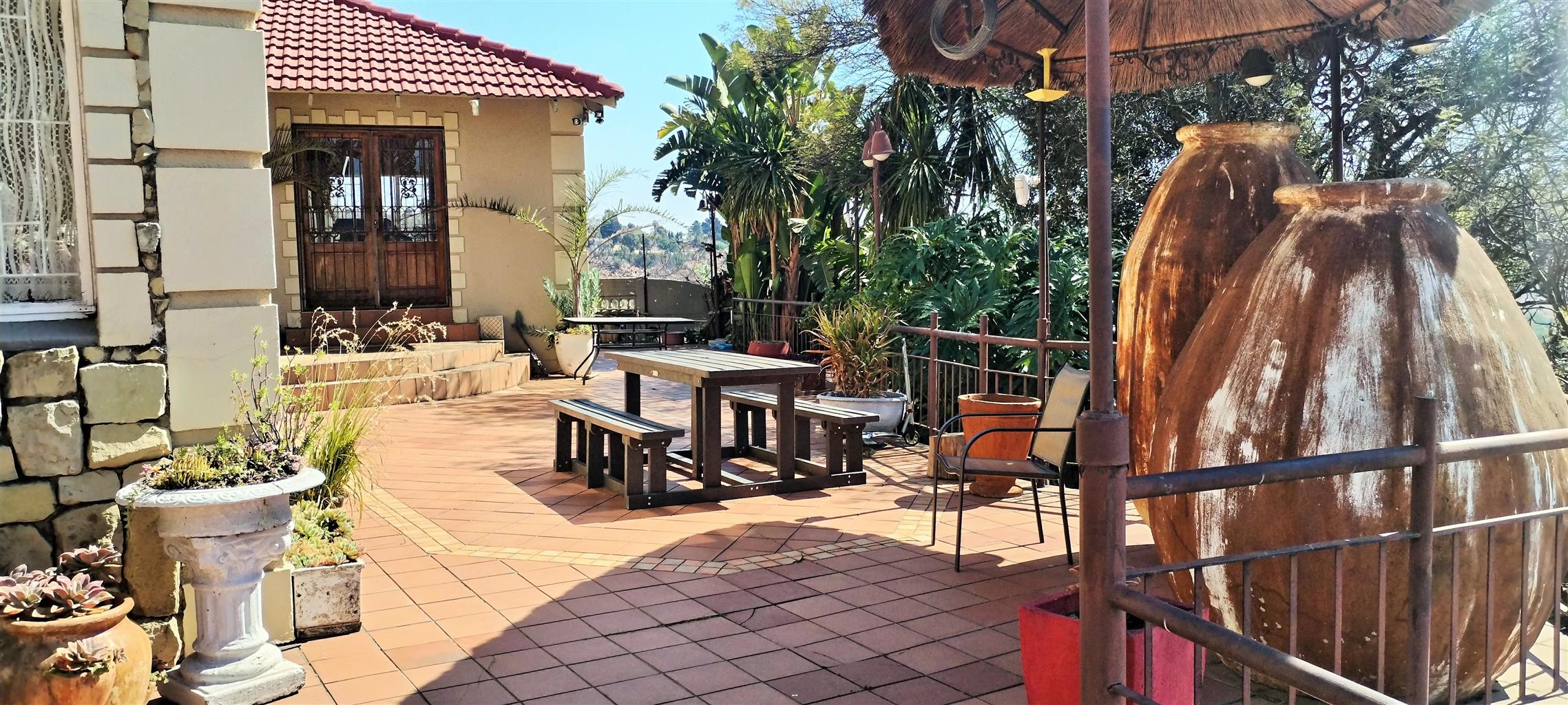 With four spacious bedrooms, three of which are upstairs, the home easily accommodates a family. The main suite is a private retreat with a dressing room, a modern en suite bathroom, and a balcony boasting panoramic views. The property also features two potential flatlets, offering versatile accommodation for extended family or guests.