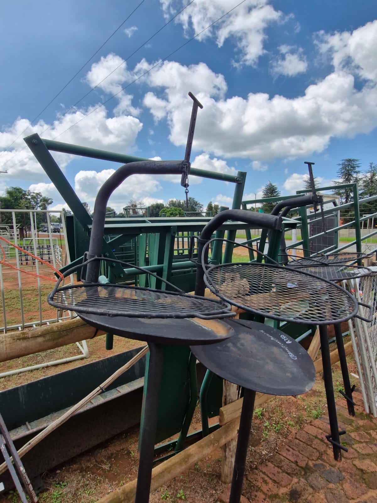Braai plate which you can plant in the ground.Also has a rotating grill.