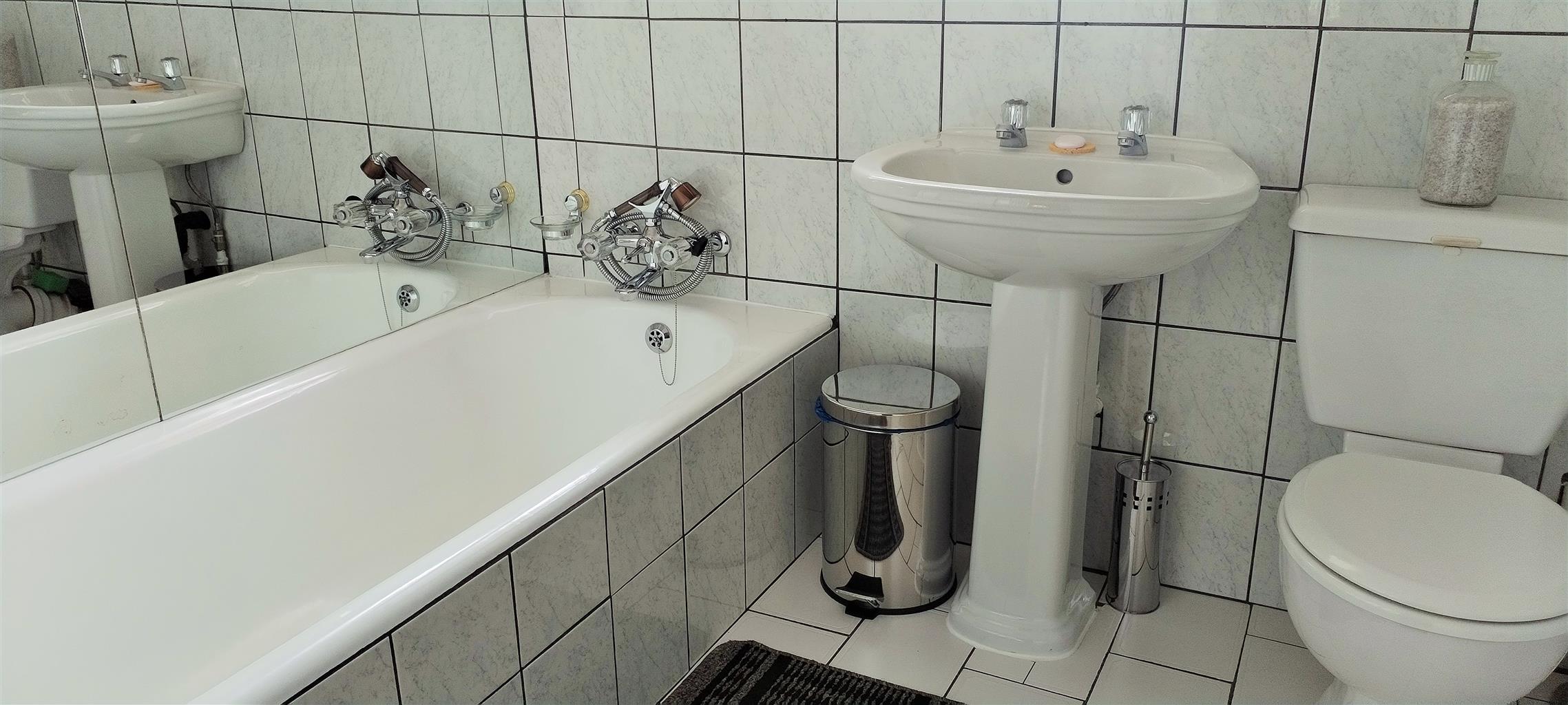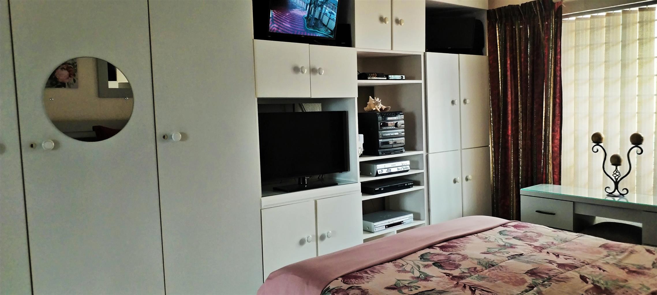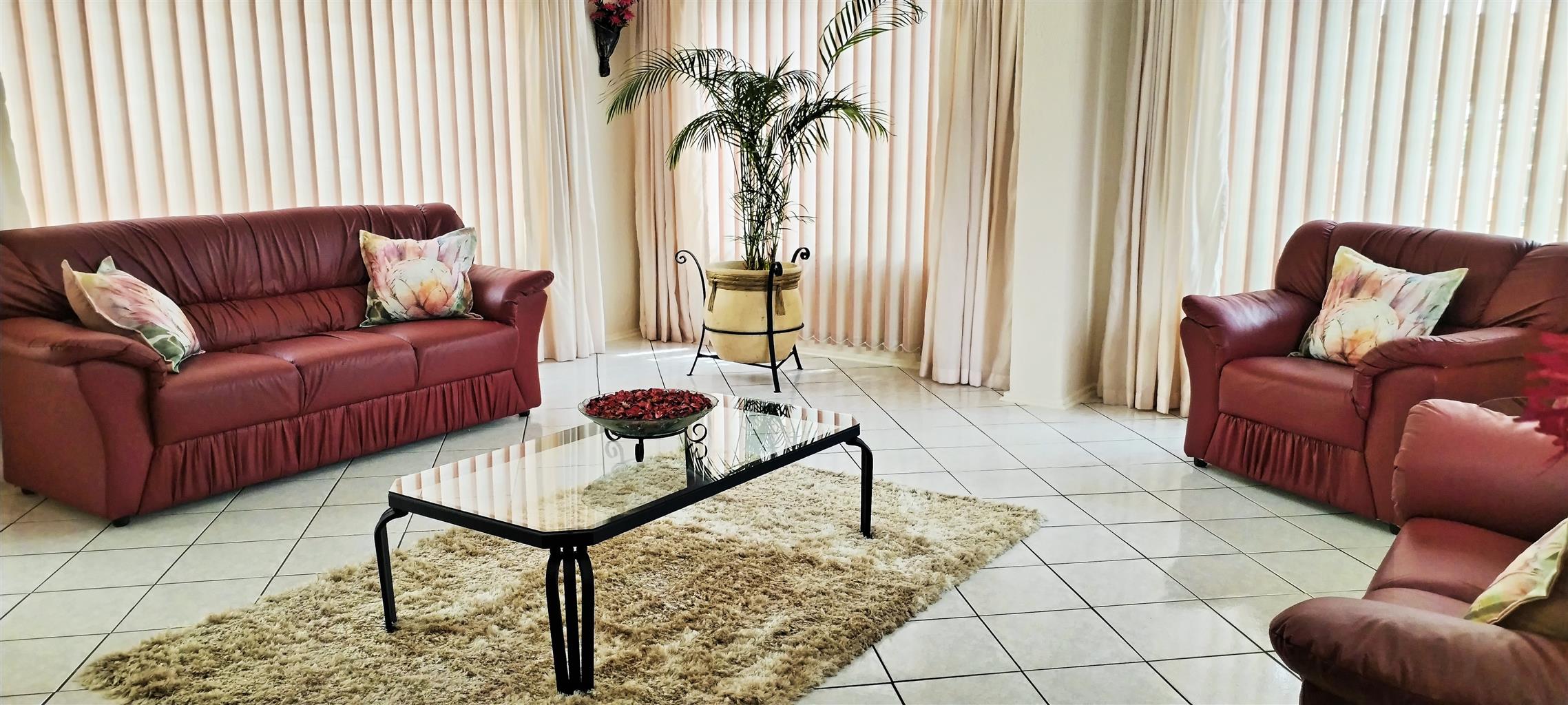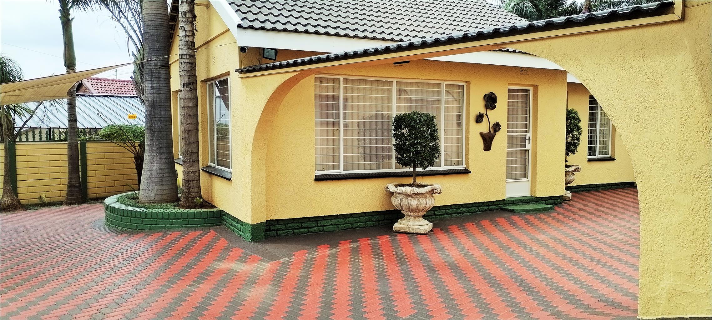 The exterior is designed for relaxation and secure living. The beautiful Lapa provides a perfect setting for outdoor entertaining and alfresco dining. The extremely well-maintained garden, featuring elegant palm trees, evokes a tranquil, vacation-like atmosphere. Security is paramount, with the entire property fully walled and gated.