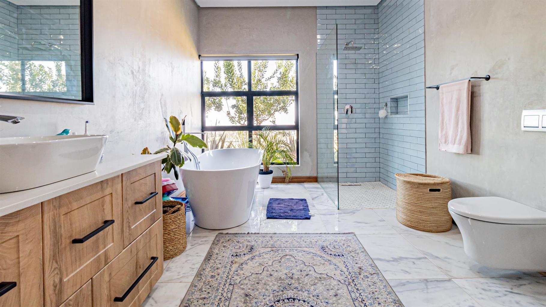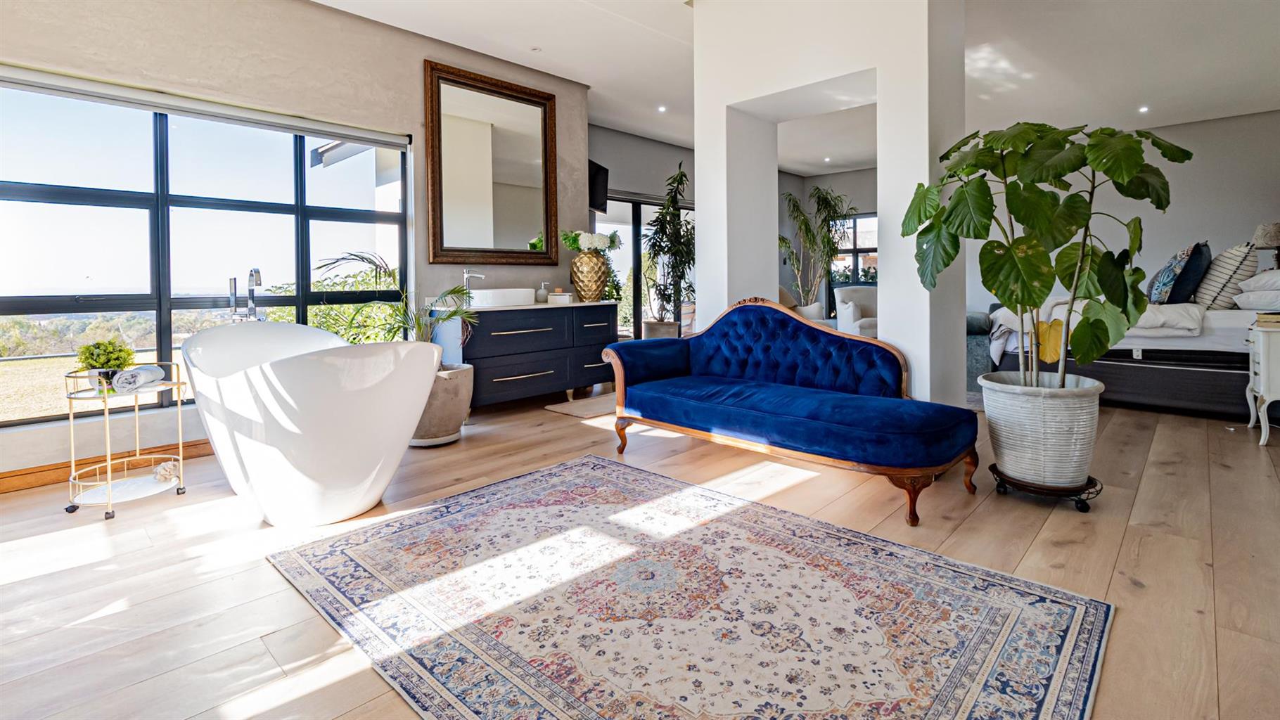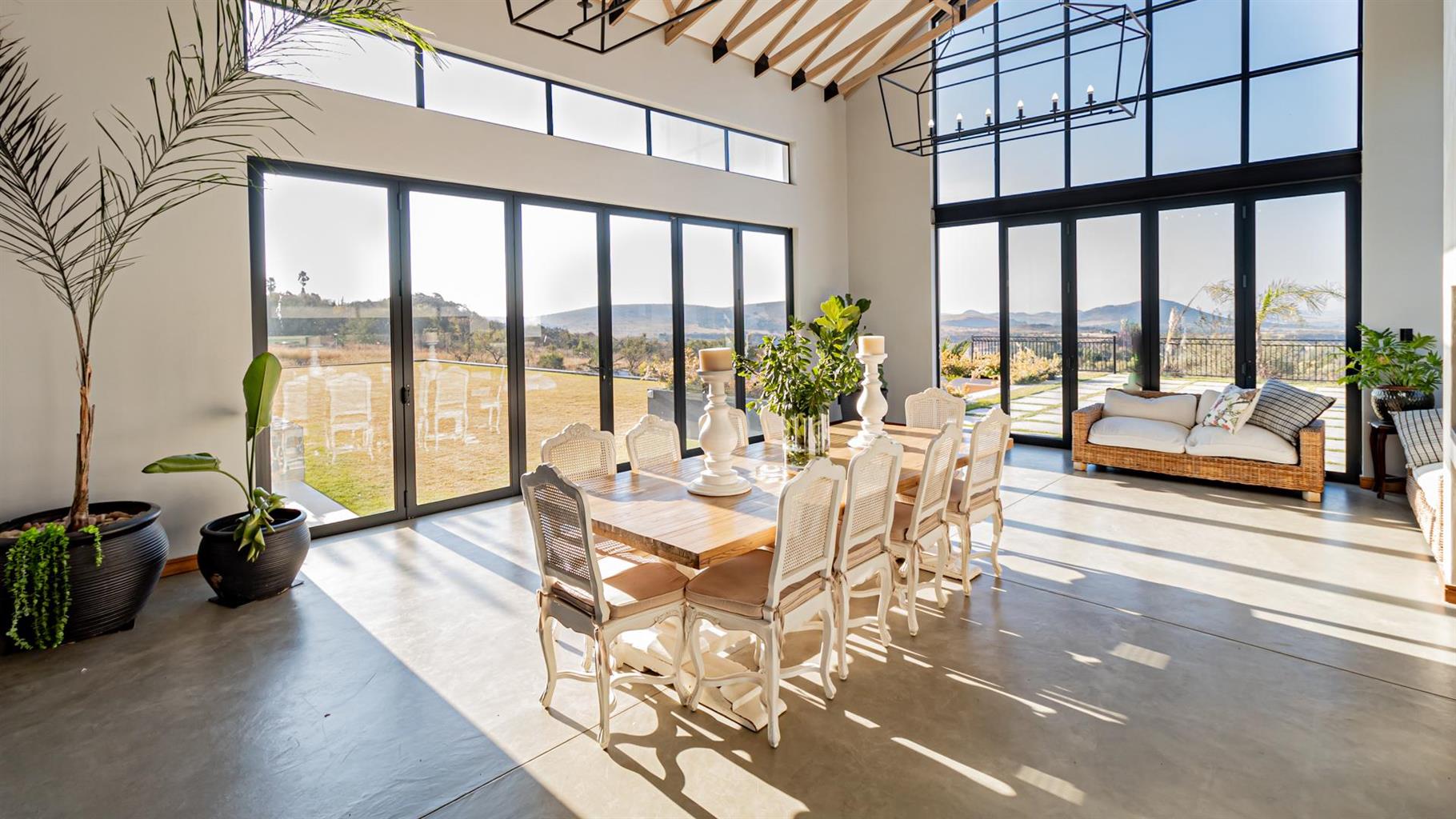 Outside, your personal haven awaits a stunning entertainment pavilion with built-in braai, stylish lounge and dining zones, a sparkling swimming pool, sunken firepit, and spectacular views of the estate's untamed beauty.