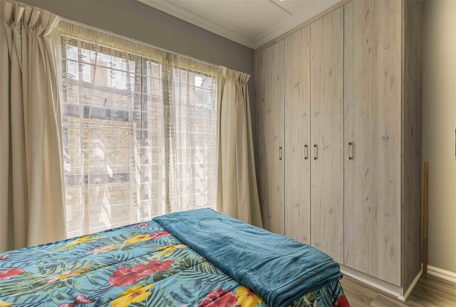 Seller needs to relocate due to health issues. This modern, ground floor unit offers 3 bedrooms (Fitted with B.I.C. and Laminated flooring), 2 Bathrooms (Main en suite), open plan kitchen (Gas hob, electric oven & extractor fan), lounge, and dining room. Covered patio with built-in braai. Your own private garden. (Geyser connected to heat pump). Complex offers 24 Hours security. Close to the Cradle of Humankind World Heritage site and country restaurants. Easy access onto the N14, Cradlestone Mall, Silverstar Casino, Northriding, Lanseria airport, Fourways, and Pretoria. We regret no pets allowed.
