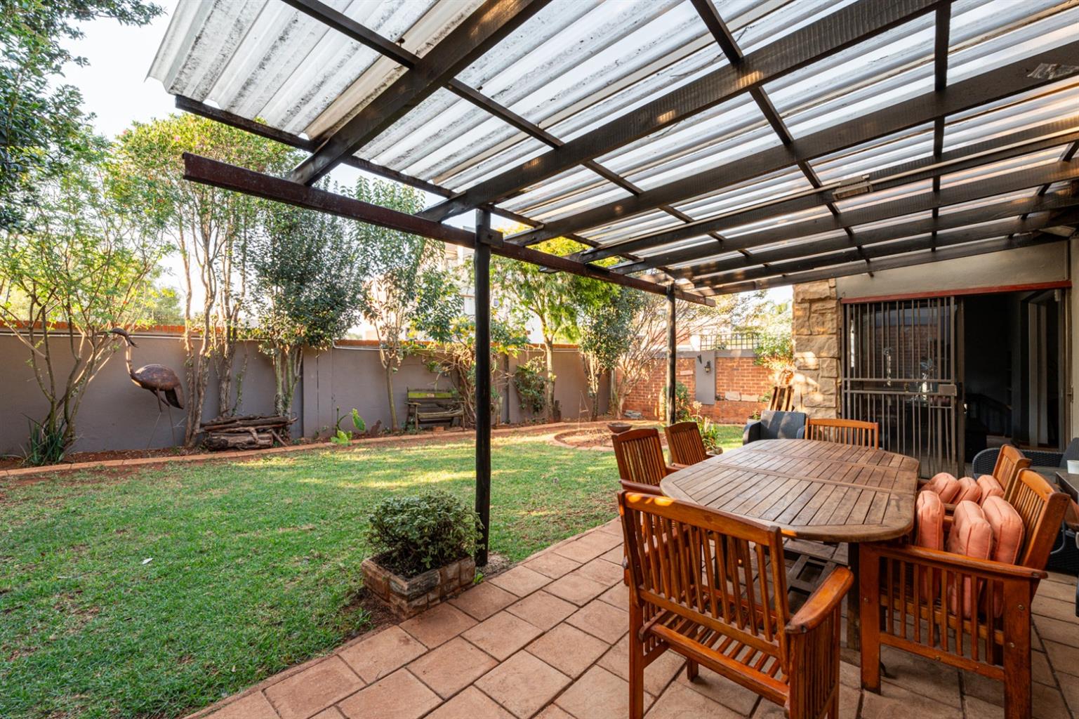 Just move in. Spacious and neat as a pin. Lovely big pet friendly garden, patio, double garage, full bathroom plus an extra guest toilet. Wall to wall cupboards for extra storage space in the garage, new tiles in the bedrooms, aluminum window frames, security gates and burglar bars. The complex is 24HR guarded with electric fencing and cctv cameras. Open plan living areas plus a dining room. The kitchen has got ample storage space. Call today for an exclusive private viewing.