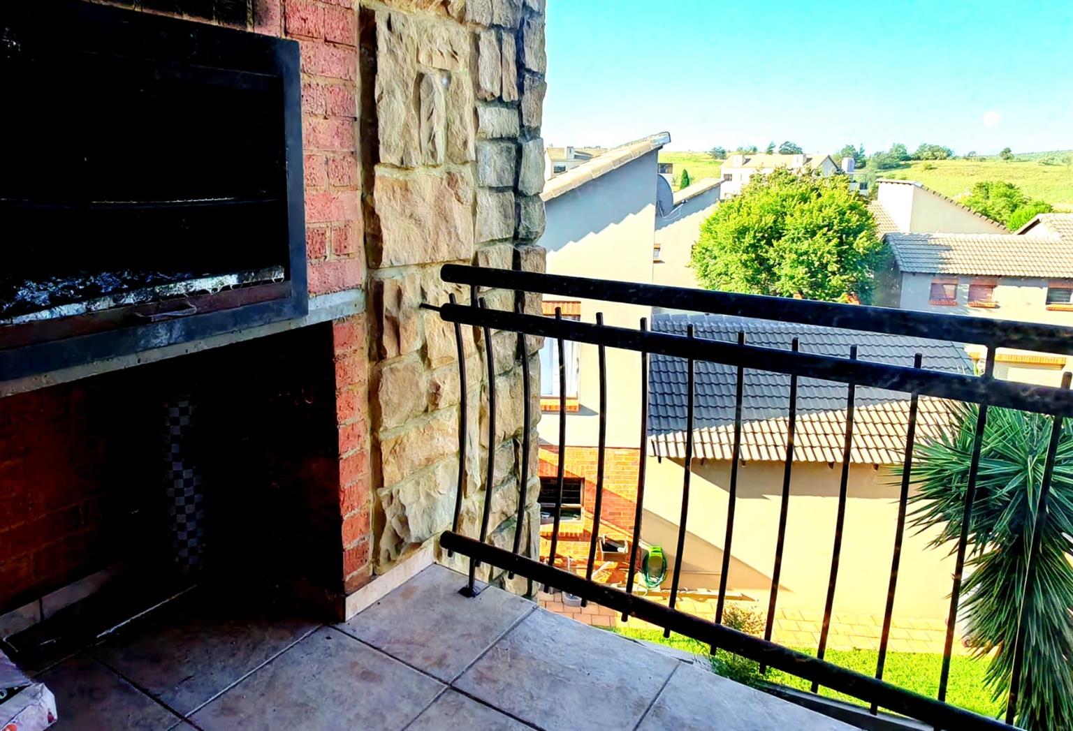 The balcony is private with a built-in braai. It has a lovely view as well. Really lovely for braais and relaxing