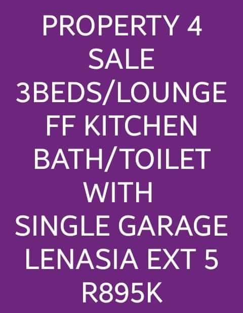 3 bedroom house. 3 bedroom (Bic), kitchen fully fitted, bathroom, toilet, lounge, single garage. Situated in a good area. No pics available. Viewing by appointment only
