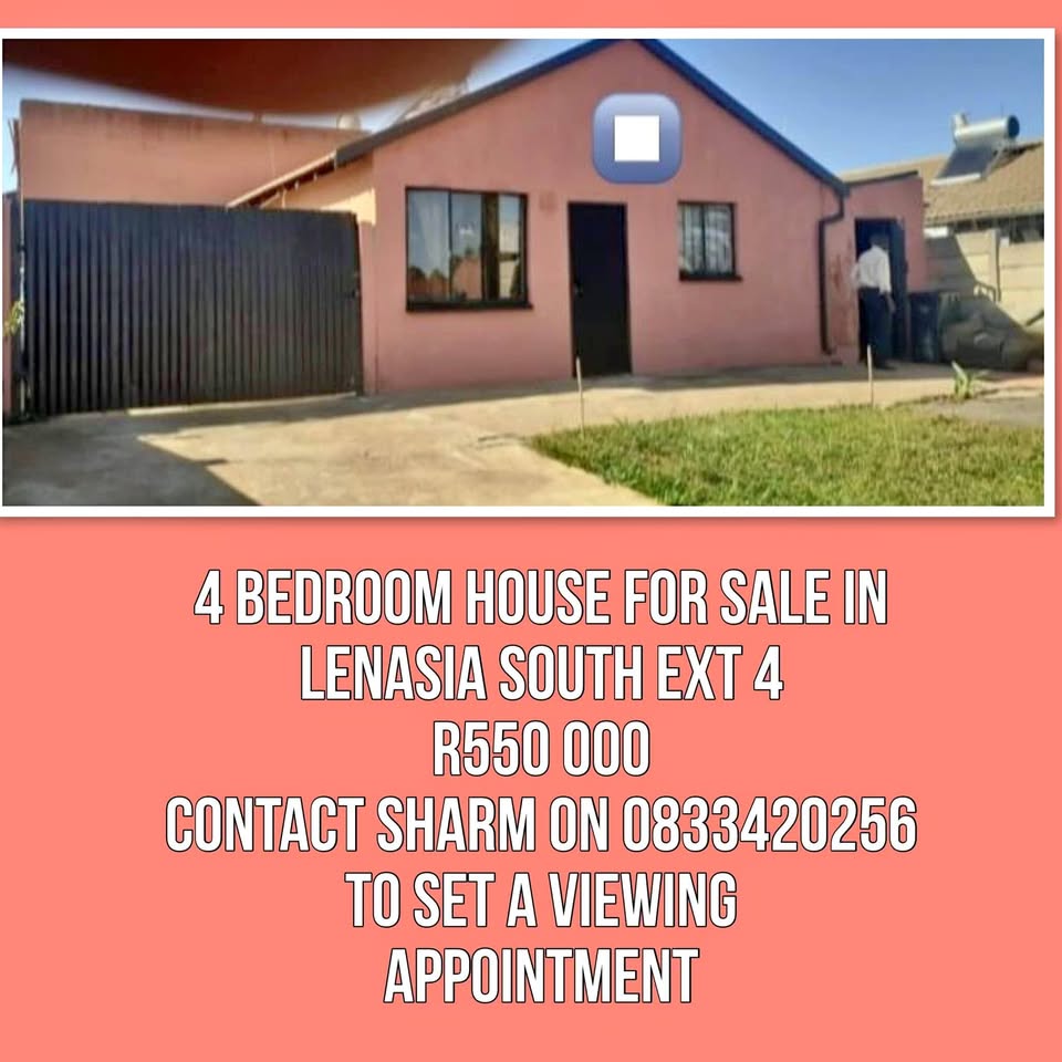 4 bedroom house for sale in Lenasia south ext 4 R475 000 Reduced from R550 000 Contact for more pics and a viewing appointment No time wasters Serious buyers only please