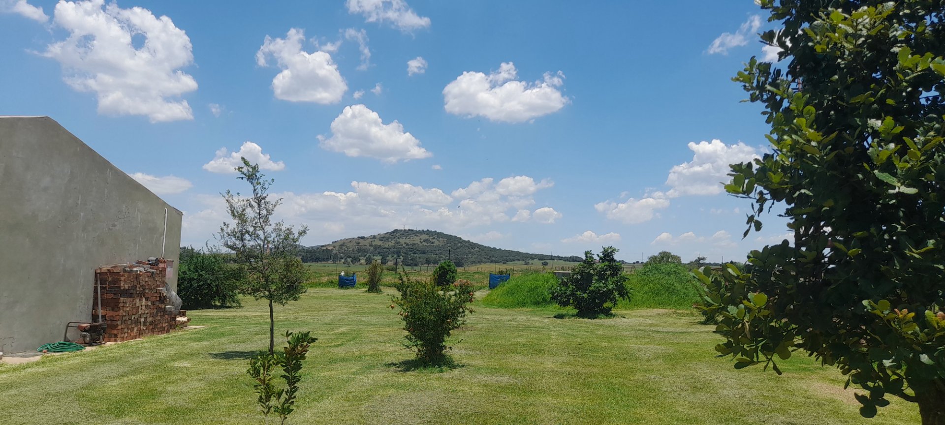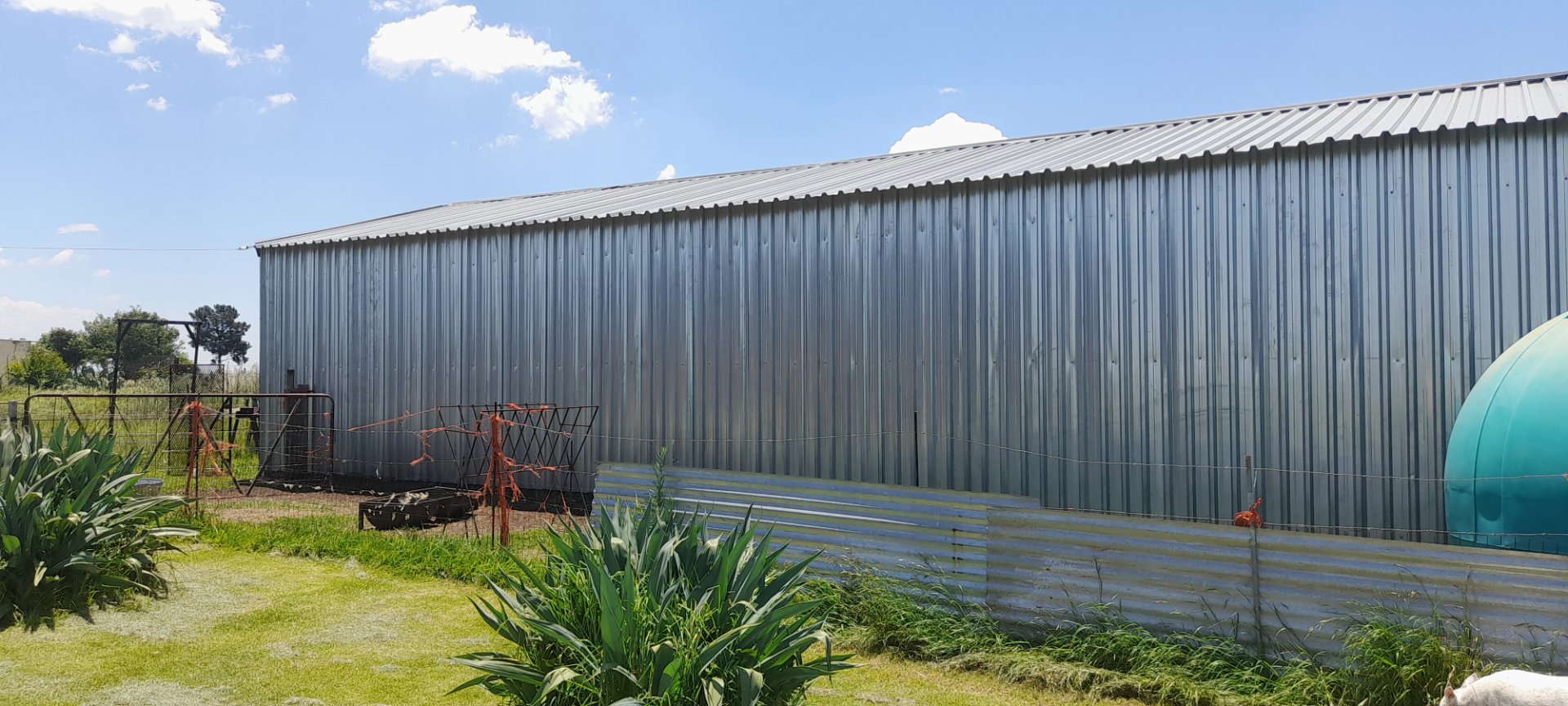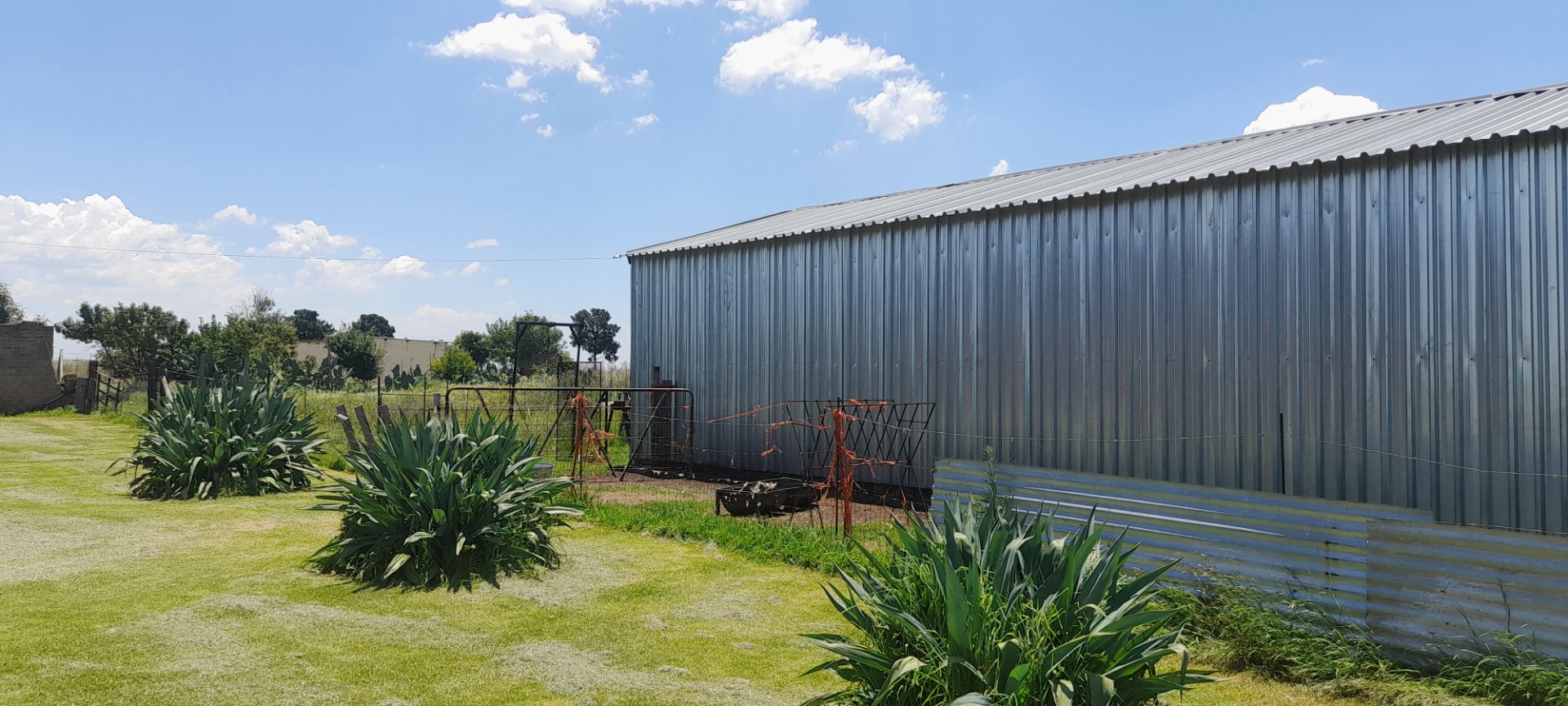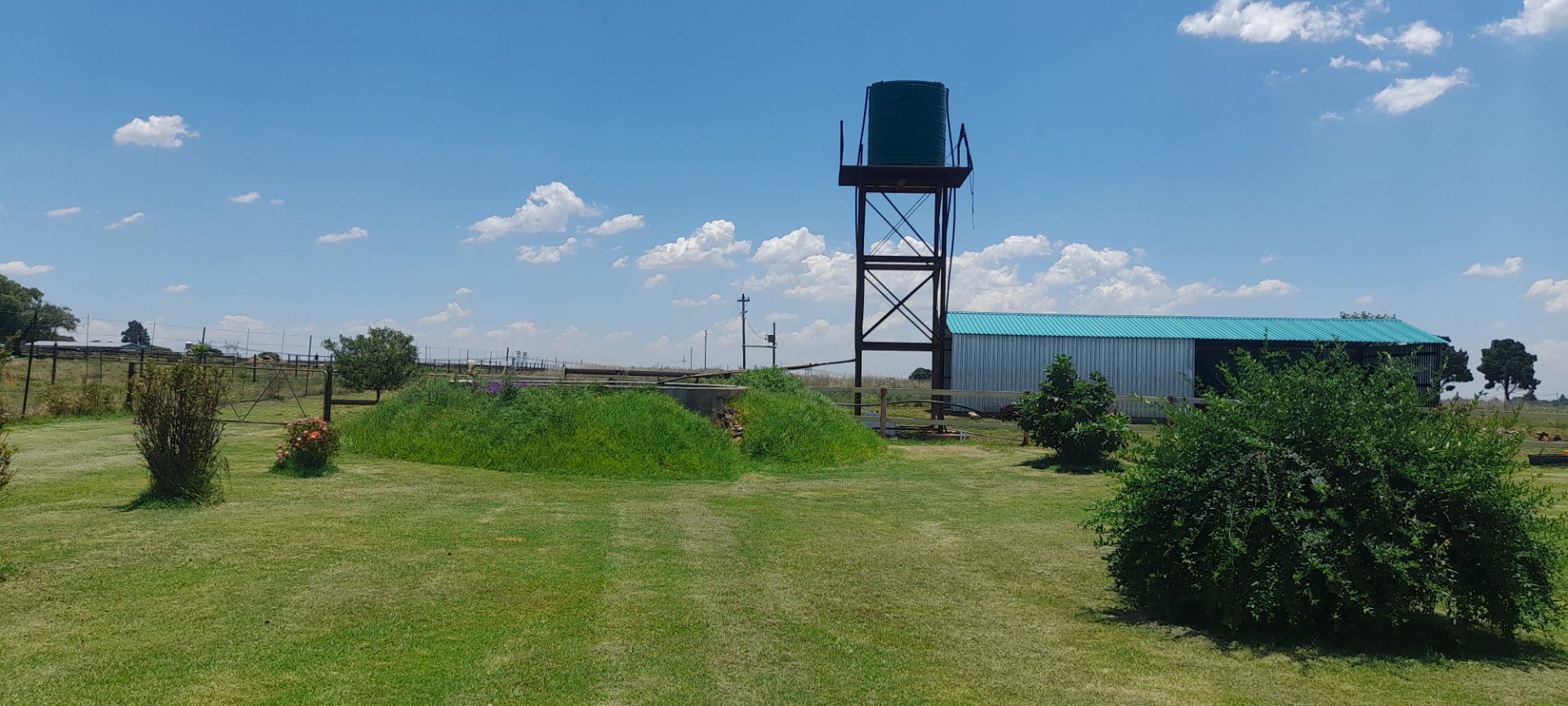 Outbuildings comprise 2 steel store rooms (included with IBR) of 108 m² each ( 6x18m each), Large garages with 3 entrances that are 81 m²( 9mx9m ), and the small brick house where your borehole pump is secured. Borehole 50m deep with a submersible pump rendering 2500 liters per hour with a 5000-liter tank that takes + - 2 hours to fill up,(connected to the solar system)Solar system comprising of 5KVA Deye inverter, 8 x 200amp amp-hour batteries, (12 x 250 watt) solar panels.With a solar geyser.
