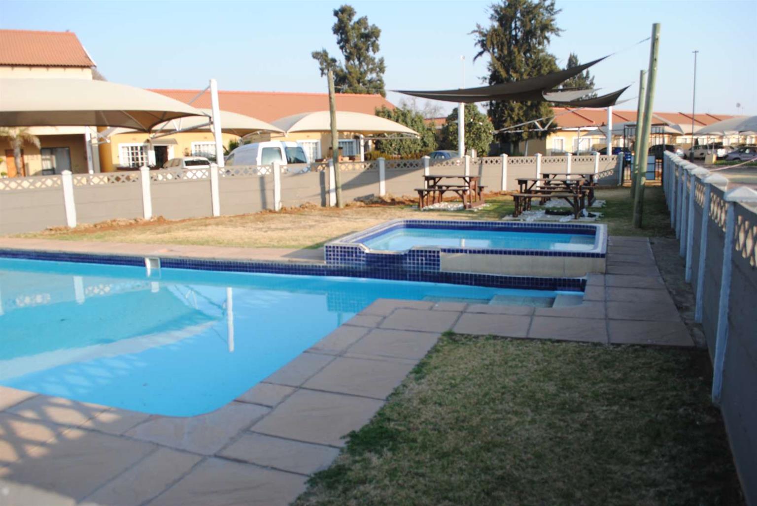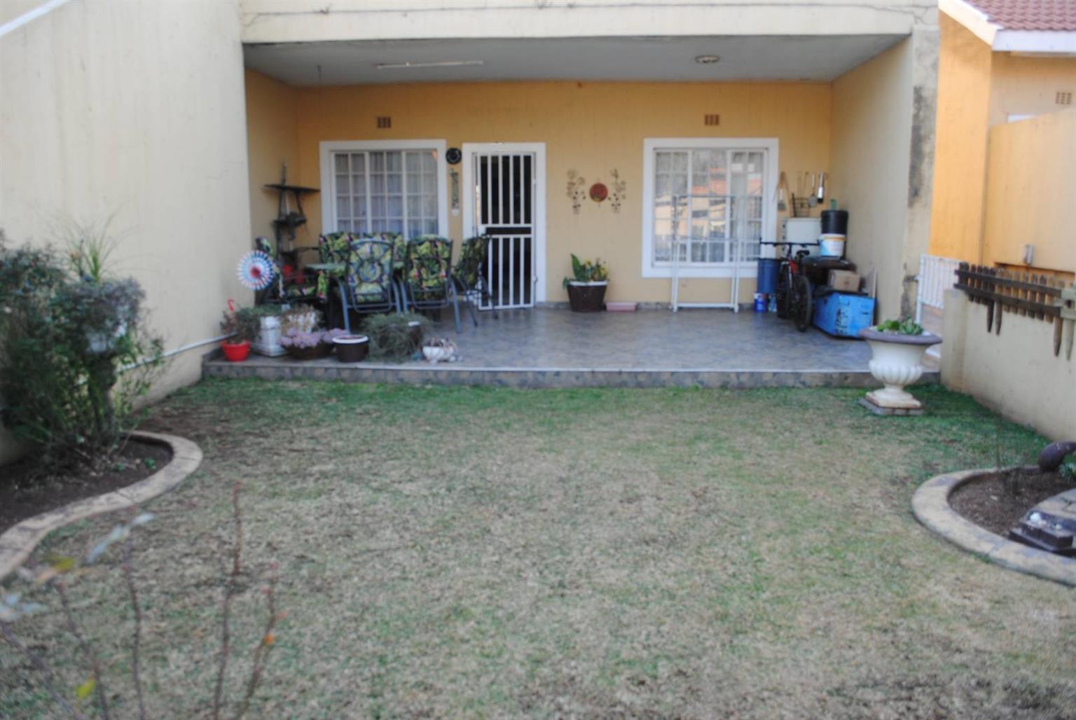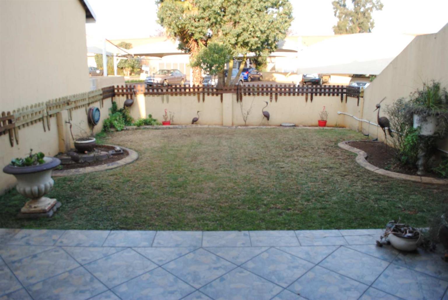 Neat ground base unit with garden and patio.