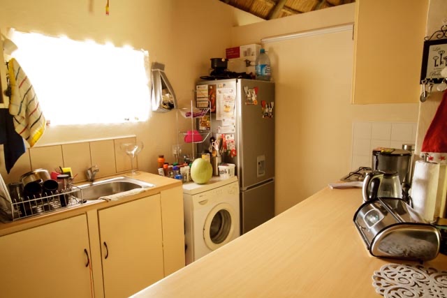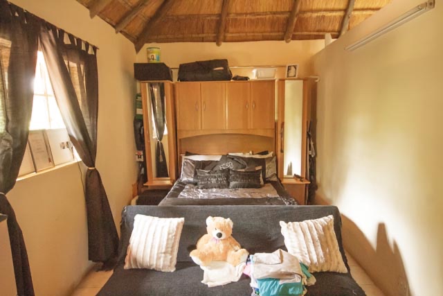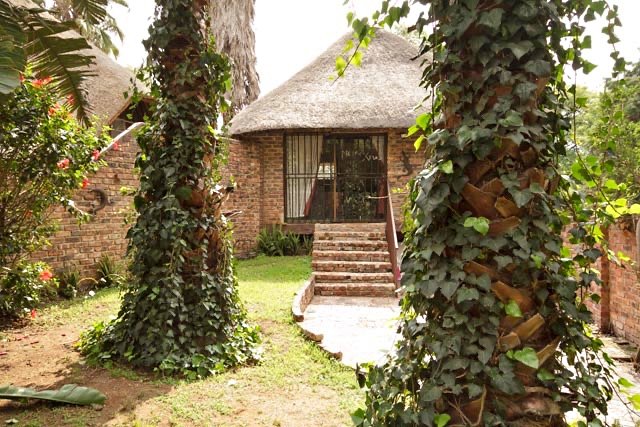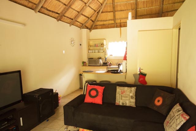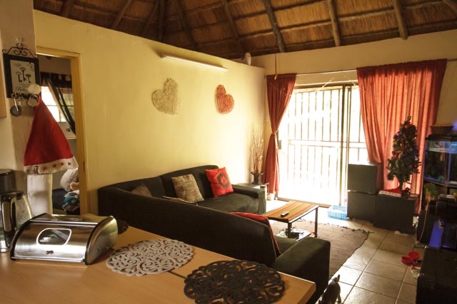 Rustic thatched, unfurnished cottage with a private garden in Blue Hills AH, Midrand. (Just north of Kyalami) Pool in the complex. Rent in advance plus 1 months deposit on the cottage. Water included in rent. Gas stove. Prepaid electricity is extra.