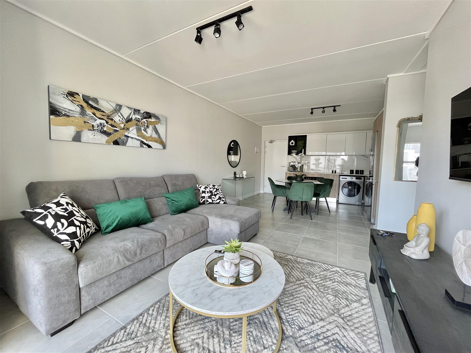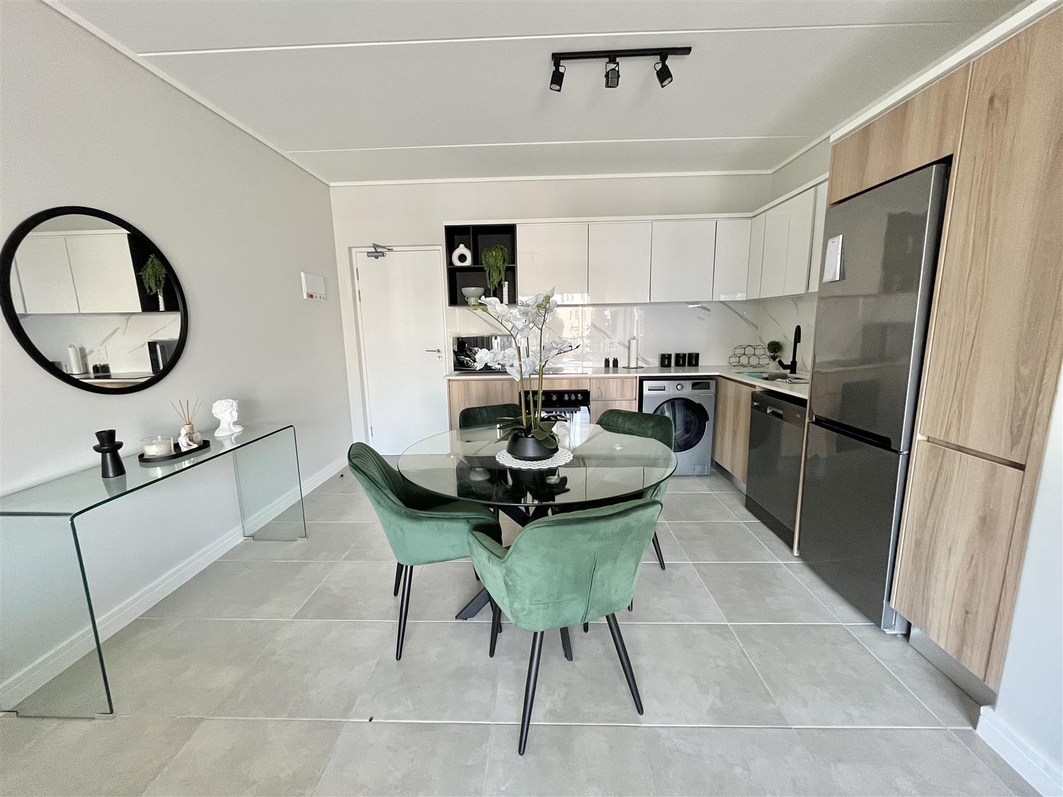 The dining space is furnished with an elegant glass table sitting 4 guest.