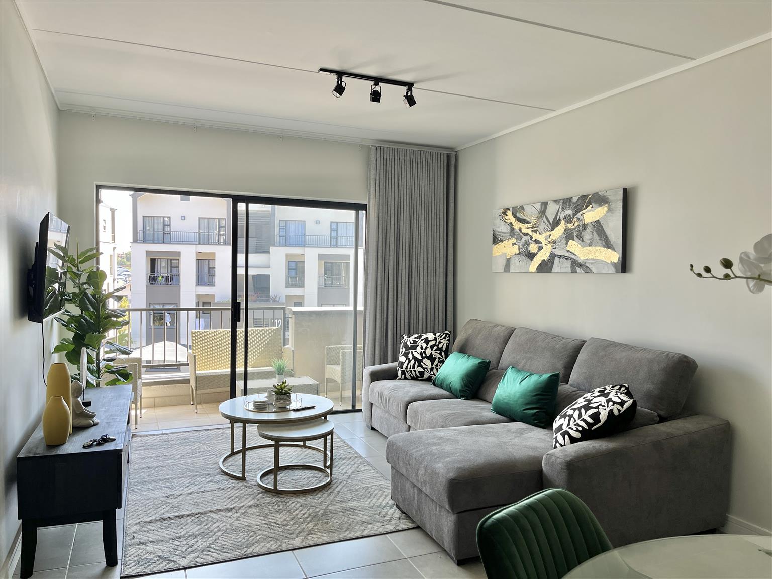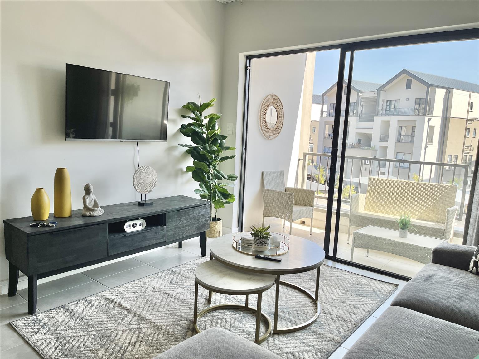 The lounge is furnished with 3 seater couch, coffee table, TV and stand.