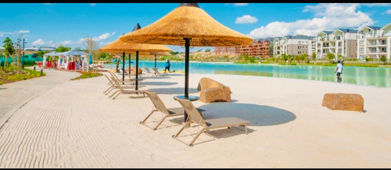 The apartment features a spacious living area with modern finishes. The estate amenities include a Lagoon, Restaurant, Spa, and Gym.